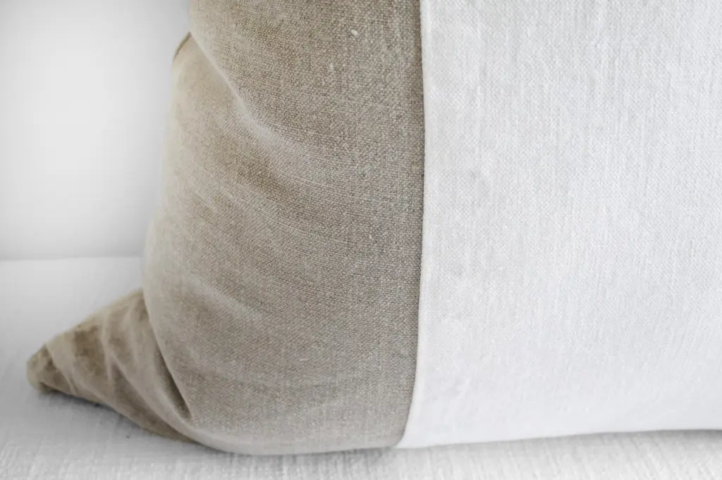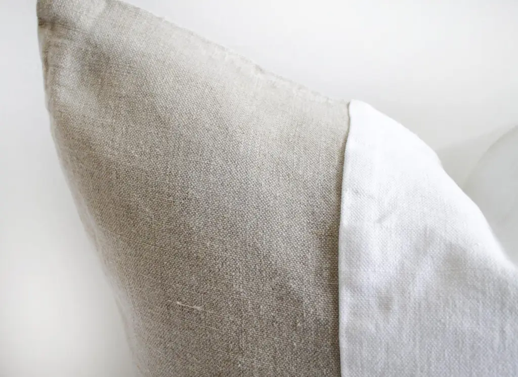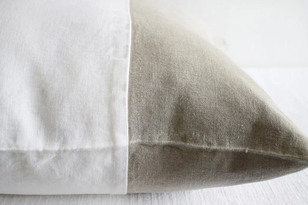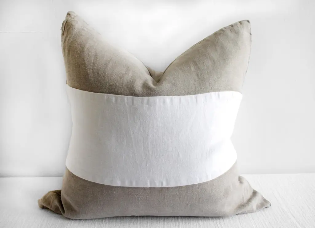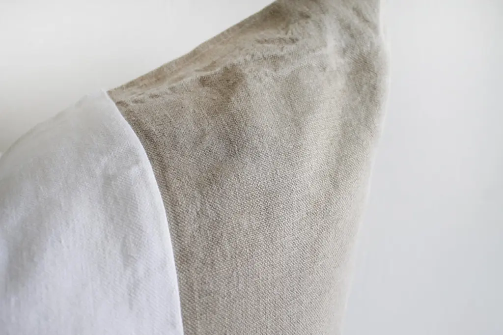 Custom made Belgian linen euro shams natural and white colorblockSize: 26" x 26"Heavy natural linen with stone washed look, with zipper closure, and overlocked seams.Machine wash and tumble dry low.Inserts not included.