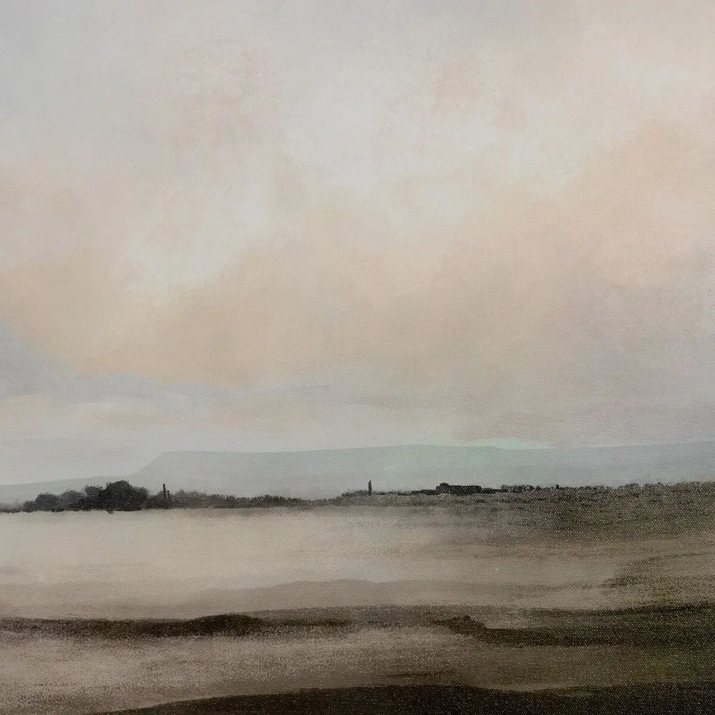Artist Dan Hobday finds inspiration in the coastal landscapes of his hometown of Devon, England. This serene piece is framed for a gallery-quality look. Handmade in Austin, Texas.
