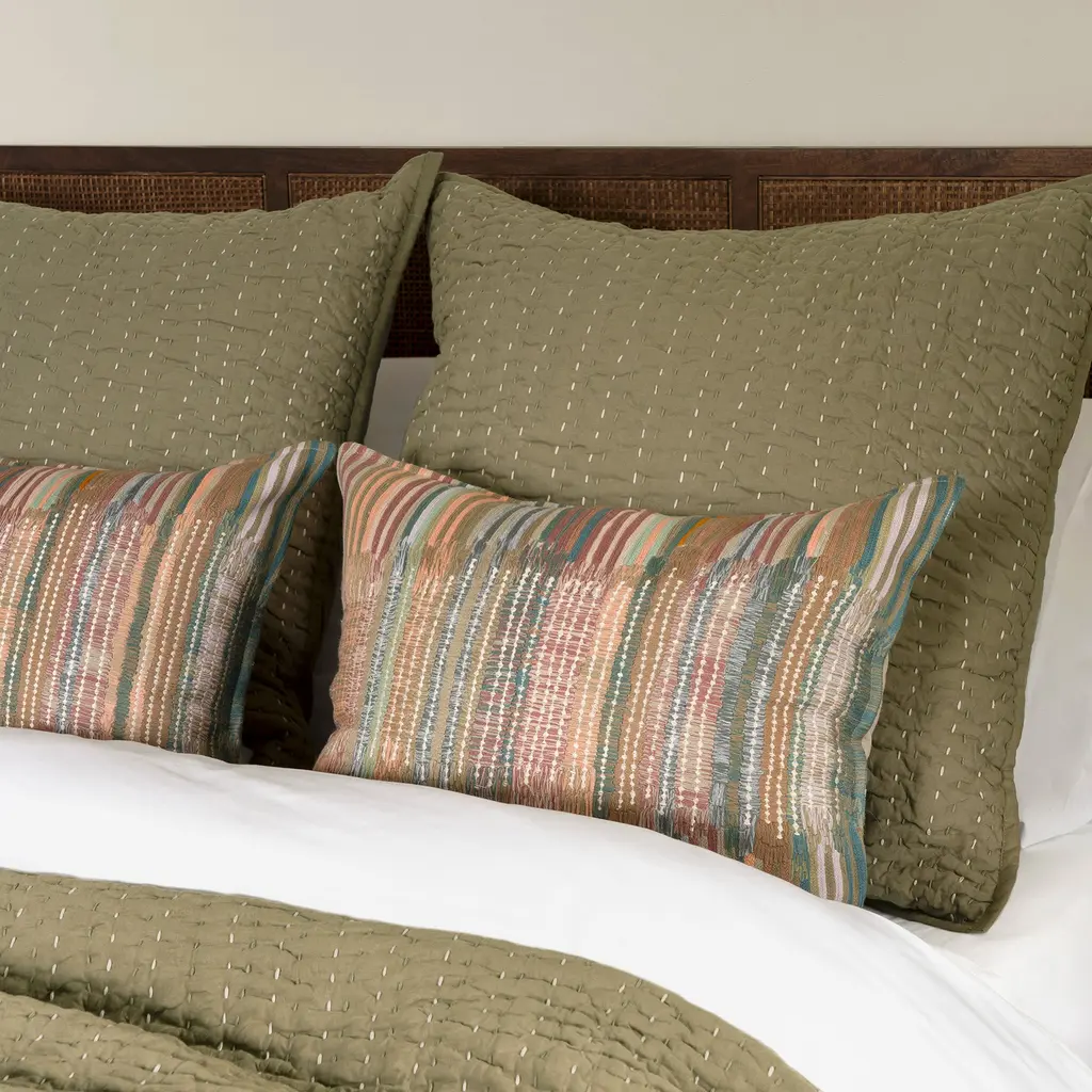 Quiet luxury comes to life in the Deepali Kantha Quilted Sham. With a relaxed texture and a solid hue, this linen-cotton blend sham offers a grounding, handmade look that layers seamlessly with the matching quilt.