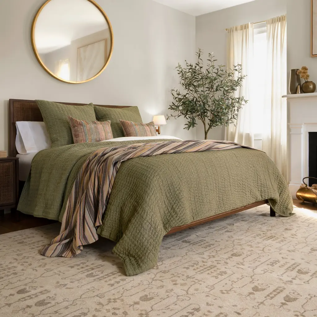 Deepali Kantha Quilted Sham | Olive
