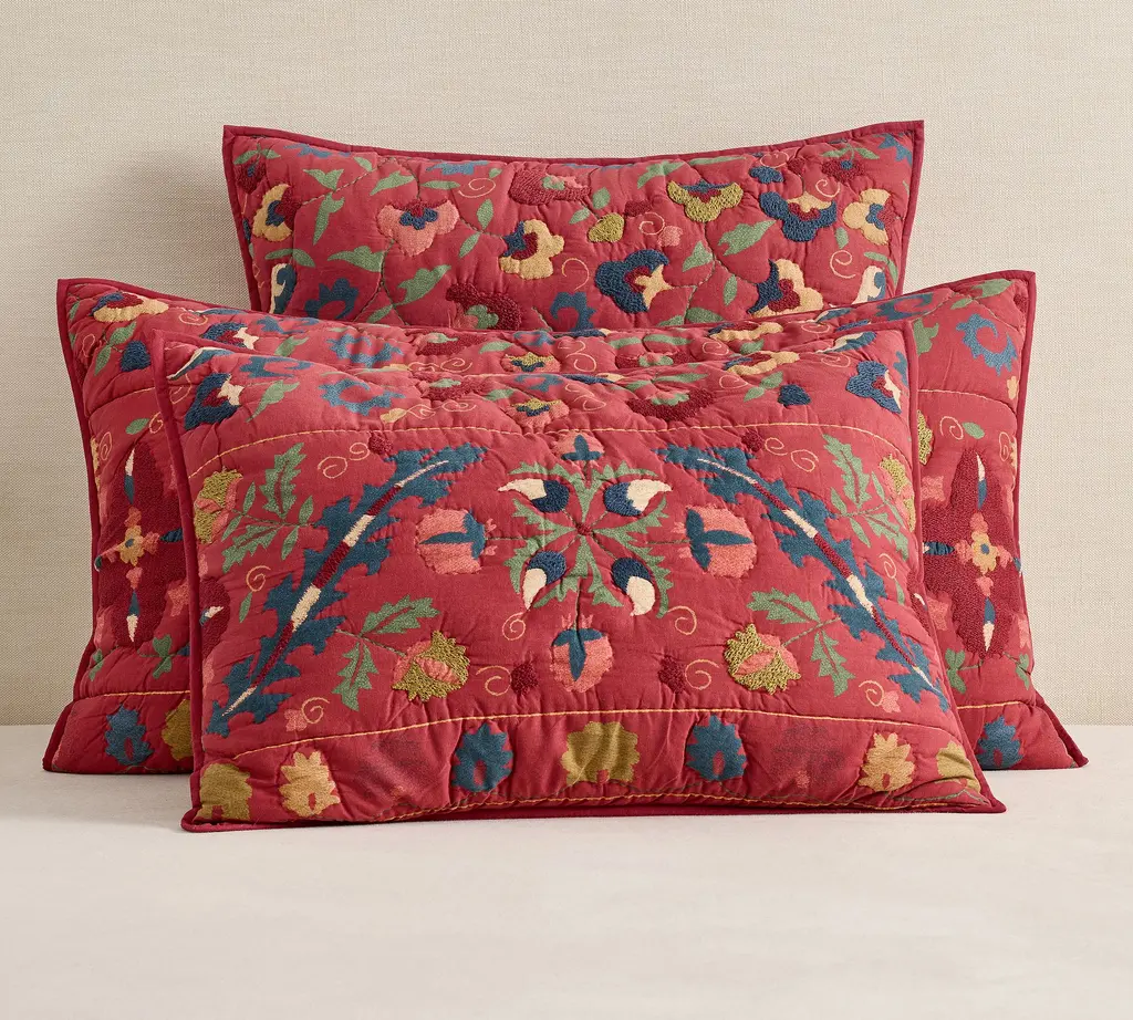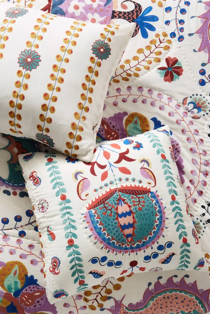 Informed by decades of technique development, the age-old process of hand screen- and block-printing has become a cultural cornerstone in Jaipur, India. The highly skilled artisans at the forefront of this practice craft each of our quilts through a time-tested method of 13 different processes, each of which is done by hand - including the final kantha stitch. From the expert color master - who blends each hue with its own unique formula - to the craftsmen and women - who, in pairs, lay down each screen frame with stunning precision - our team of makers apply their expertise and knowledge to a line of exclusive, handcrafted bedding that adds an element of unparalleled artistry to your home. Each one-of-a-kind quilted piece is crafted from a lightweight voile and finished with delicate, hand-stitched kantha. To help preserve the quality of your unique work of art, we recommend washing on a gentle cycle with care. Looking for the sweetest of dreams? Read our guide to find the perfect bedding for you, and learn how to care for it season after season.