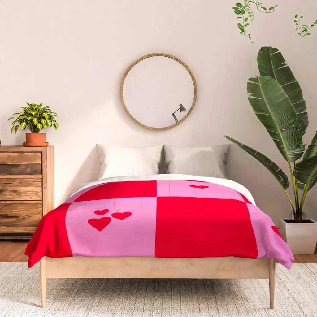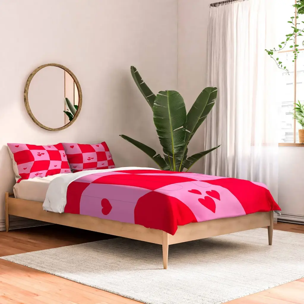 Deny Designs 3Pc Full Angela Minca Grid Pattern Hearts Kids' Comforter And Sham Set