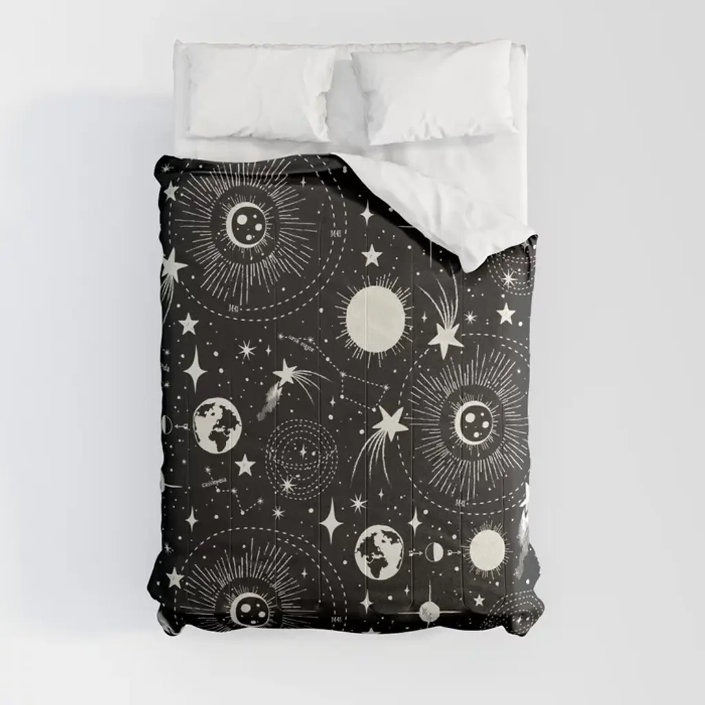 The Deny Designs comforter set is a soft, year-round bedding made from 100% premium microfiber polyester, 90 gsm (equivalent to 300 thread count) and lined with fluffy, lightweight polyfill. The comforter and shams feature your print on the front with the reverse side a crisp, clean white to complement any decor style. Printed using non-toxic inks, the comforter is channel stitched in a quilted pattern. Each comforter is available with matching pillow sham(s). Color variations between on-site previews and printed fabric may occur.Machine wash cold, gentle cycle. Tumble dry low. Do not bleach or iron. We recommend washing prior to use to increase softness. Every order is custom printed in the USA. And the best part? Every purchase pays the artist who designed it—supporting creativity worldwide.