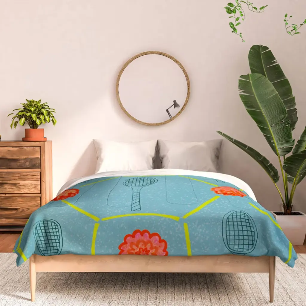 Deny Designs 3Pc Queen H Miller Ink Illustration Tennis Rackets Roses Kids' Comforter And Sham Set Blue
