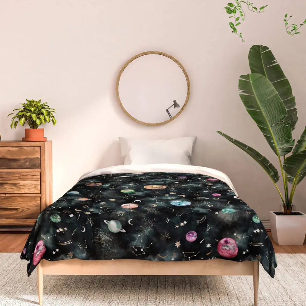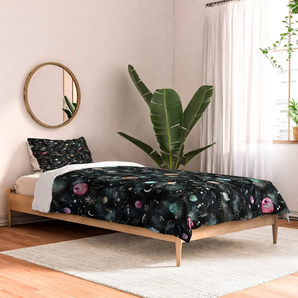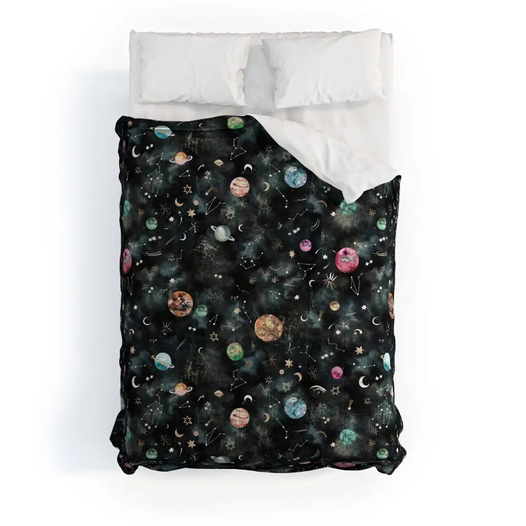 The Deny Designs comforter set is a soft, year-round bedding made from 100% premium microfiber polyester, 90 gsm (equivalent to 300 thread count) and lined with fluffy, lightweight polyfill. The comforter and shams feature your print on the front with the reverse side a crisp, clean white to complement any decor style. Printed using non-toxic inks, the comforter is channel stitched in a quilted pattern. Each comforter is available with matching pillow sham(s). Color variations between on-site previews and printed fabric may occur.Machine wash cold, gentle cycle. Tumble dry low. Do not bleach or iron. We recommend washing prior to use to increase softness. Every order is custom printed in the USA. And the best part? Every purchase pays the artist who designed it—supporting creativity worldwide.