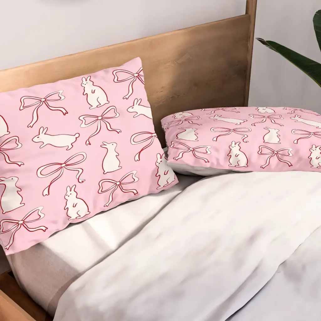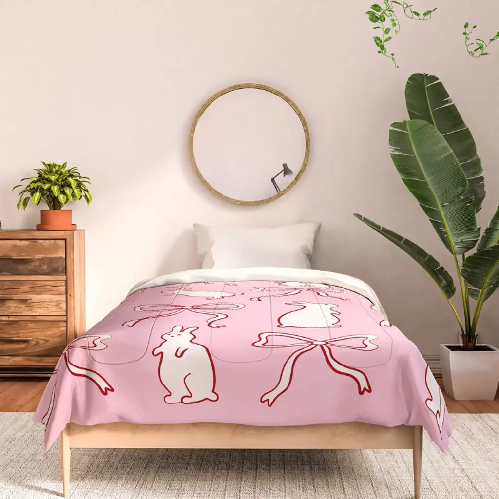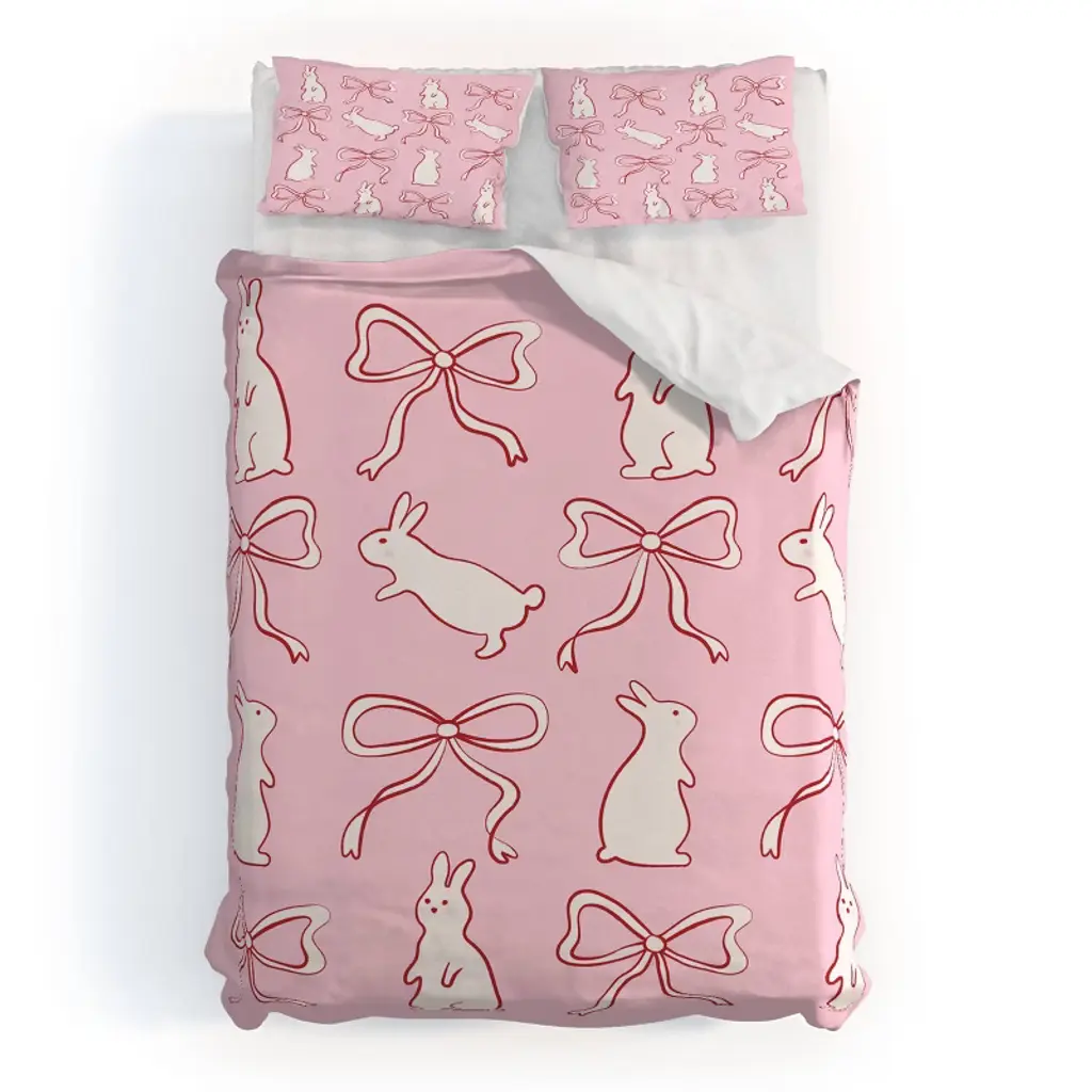 Deny Designs Kids' 2Pc Twin/twin Xl Spacehouse Ribbon Bows And Bunnies Comforter And Sham Set Red