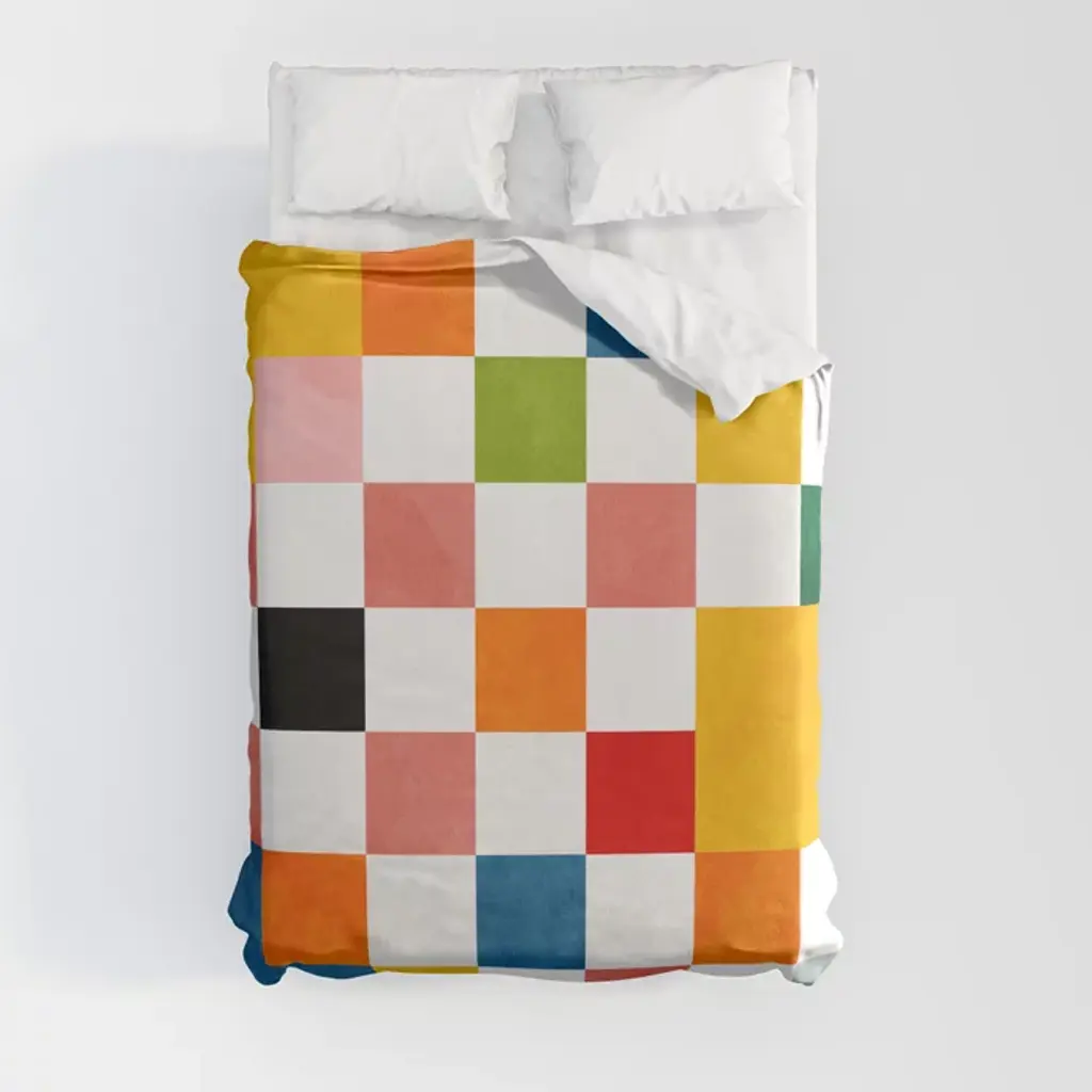 Deny Designs Kids' 3Pc Queen Angela Minca Grid Pattern Hearts Comforter And Sham Set
