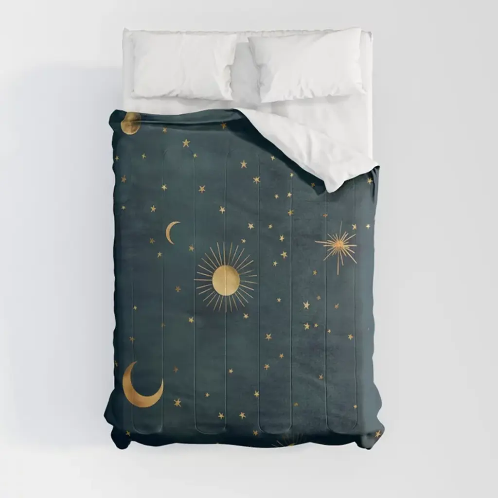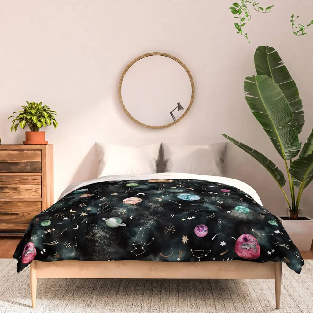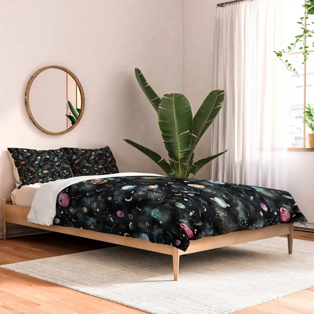 The Deny Designs comforter set is a soft, year-round bedding made from 100% premium microfiber polyester, 90 gsm (equivalent to 300 thread count) and lined with fluffy, lightweight polyfill. The comforter and shams feature your print on the front with the reverse side a crisp, clean white to complement any decor style. Printed using non-toxic inks, the comforter is channel stitched in a quilted pattern. Each comforter is available with matching pillow sham(s). Color variations between on-site previews and printed fabric may occur.Machine wash cold, gentle cycle. Tumble dry low. Do not bleach or iron. We recommend washing prior to use to increase softness. Every order is custom printed in the USA. And the best part? Every purchase pays the artist who designed it—supporting creativity worldwide.