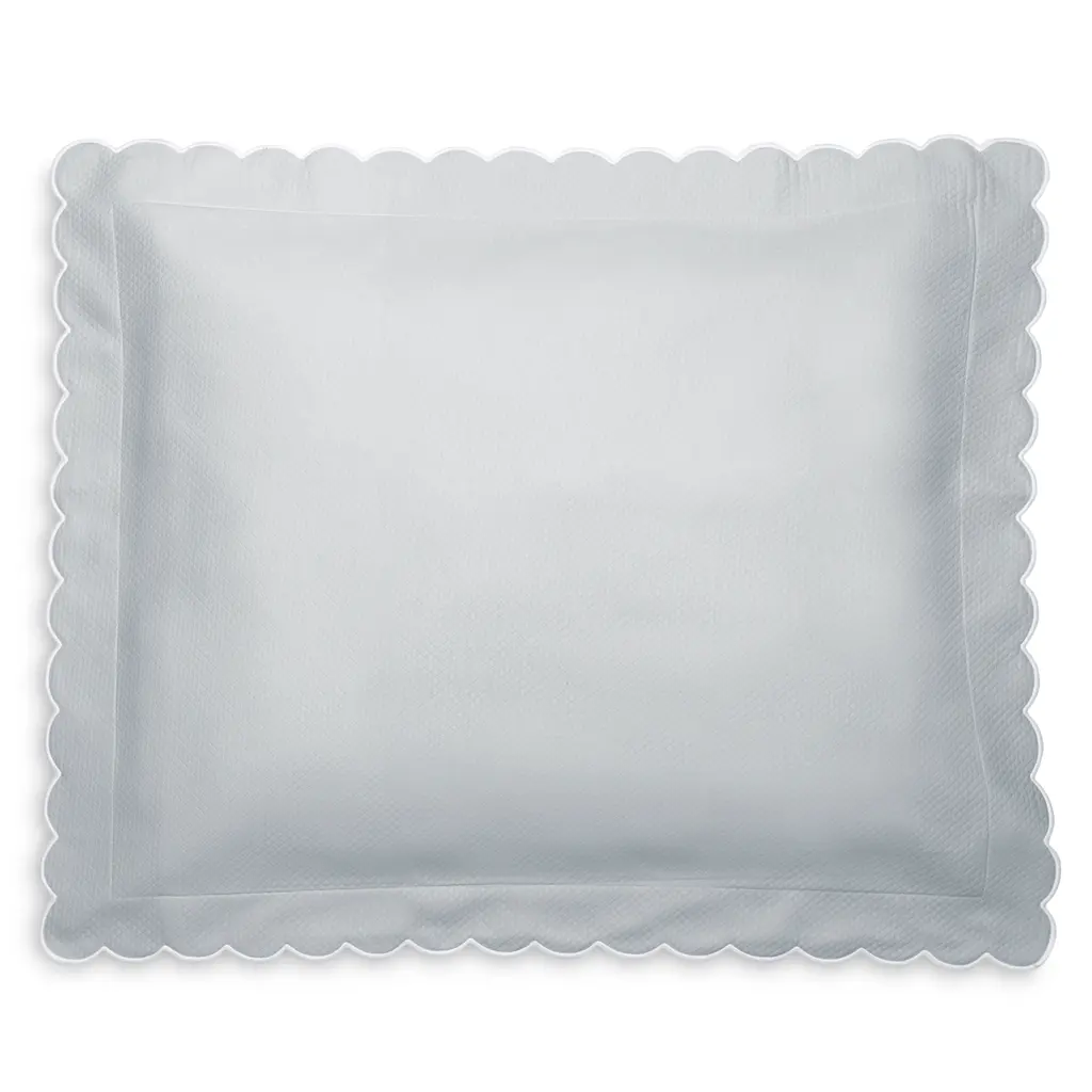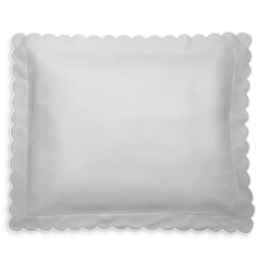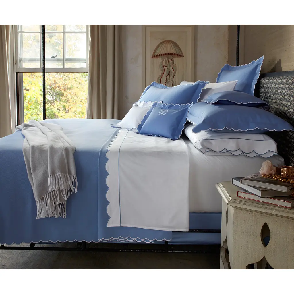 An embroidered scallop edge lends delicate detail to this cotton piqué bedding collection by Matouk.