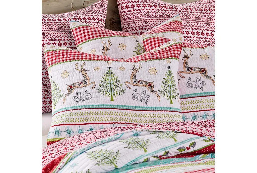 Add a festive touch to your bedroom with the Eastern King Sham-Reindeer Multi. Designed in a modern style, this sham features a delightful mix of green, red, teal, and white colors, bringing a vibrant and lively feel to your space. Made from polyester, it offers both durability and comfort for a restful night's sleep.