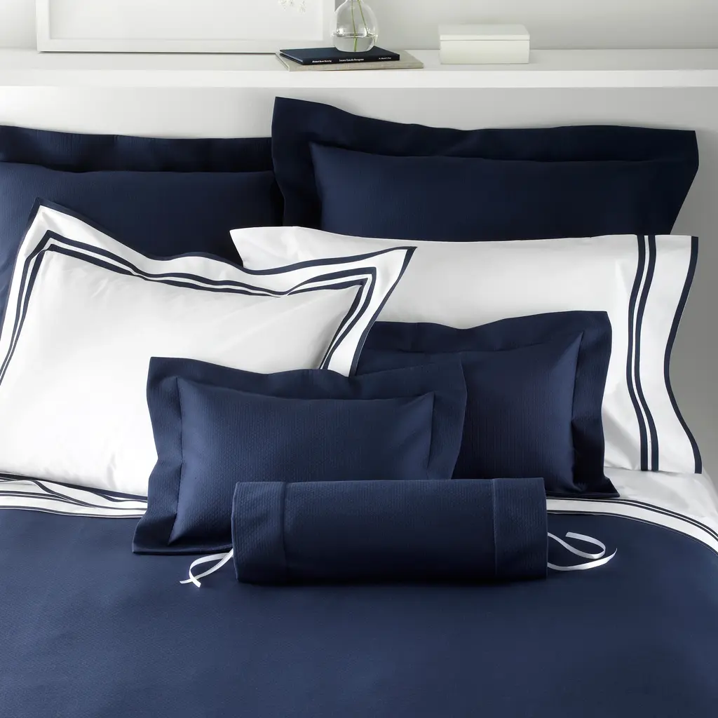 A contemporary, luxurious statement in solid hues, the coverlet and shams of the Matouk Elliot collection feature a soft, pique texture.