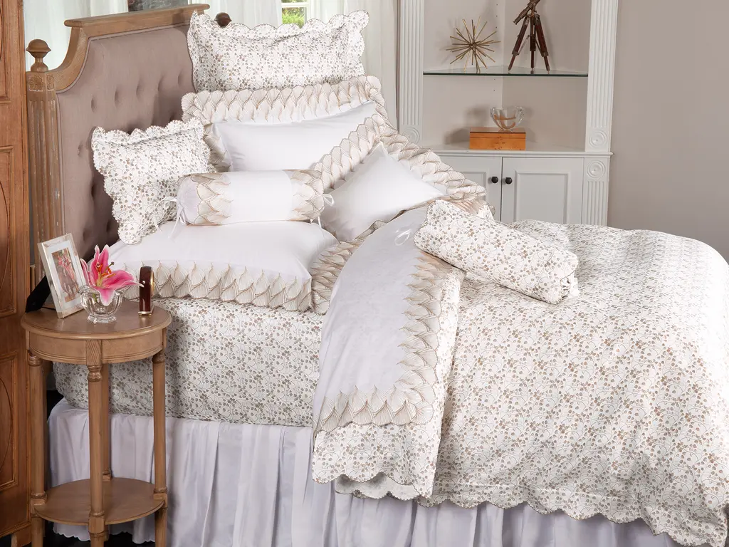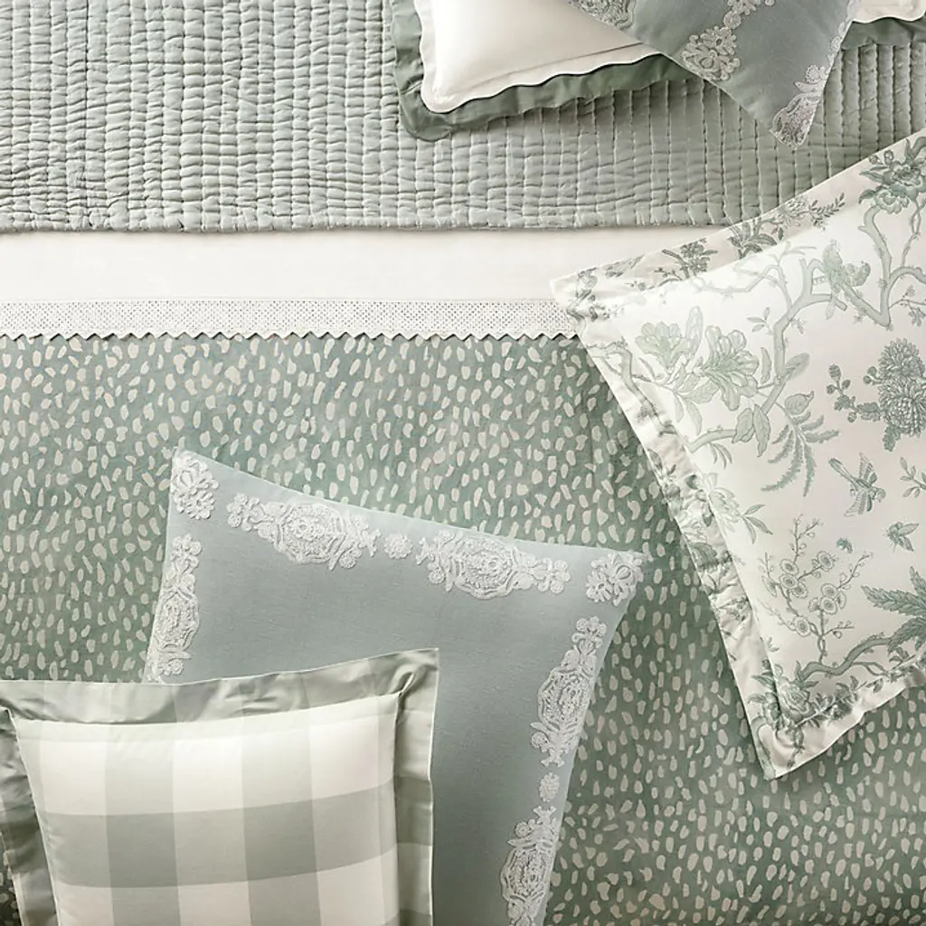 With its sophisticated look and intricate embroidery, our Elsbeth Crewel Embroidered Bedding captures the romance of old-world Europe. Made of luxurious viscose-linen blend, the pillow Shams are meticulously embroidered on the front in a quietly formal, white damask pattern with the raised texture of heirloom crewel work. Euro Sham is embroidered along each edge. King and Standard Shams are embroidered vertically in all-over matching damask. All pillow shams in this elegant bedding collection reverse to your chosen solid color. Elsbeth Crewel Embroidered Sham features: Elsbeth Crewel Embroidered Duvet Cover features: