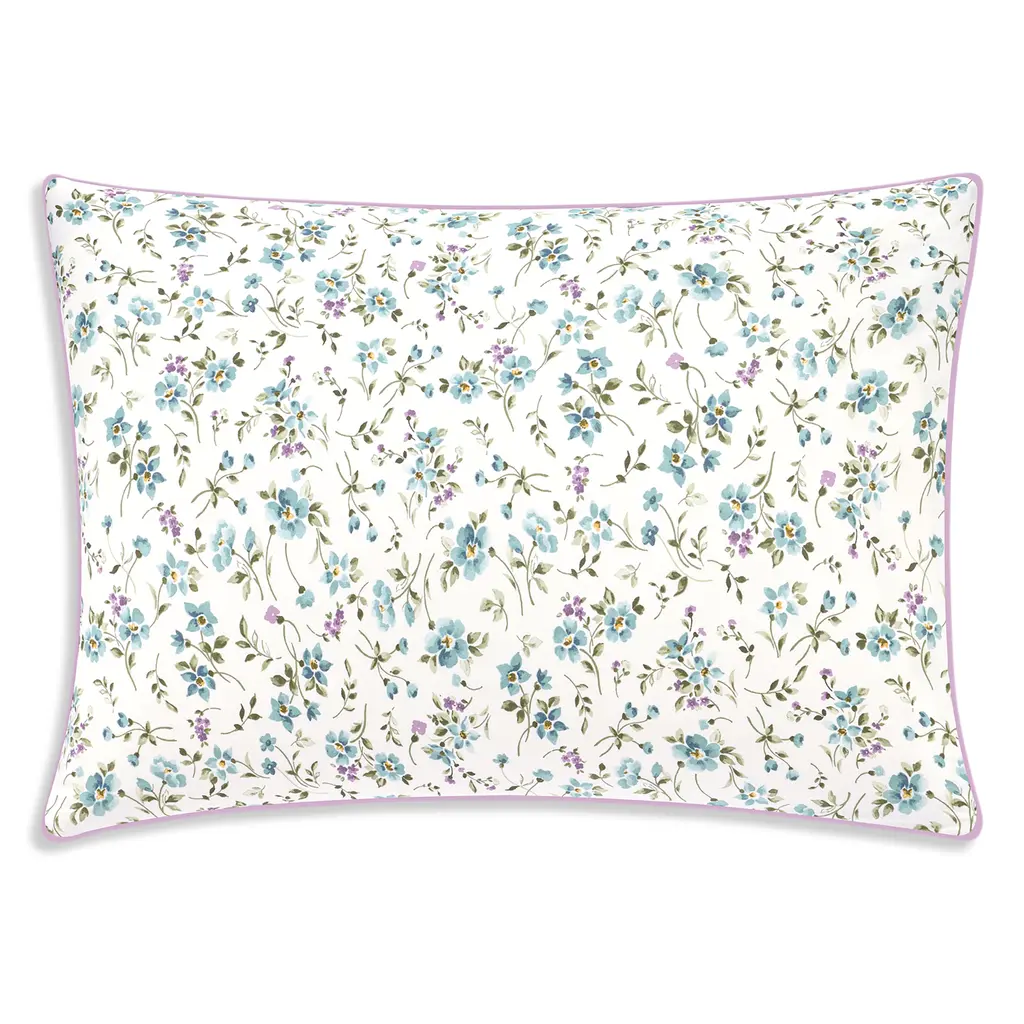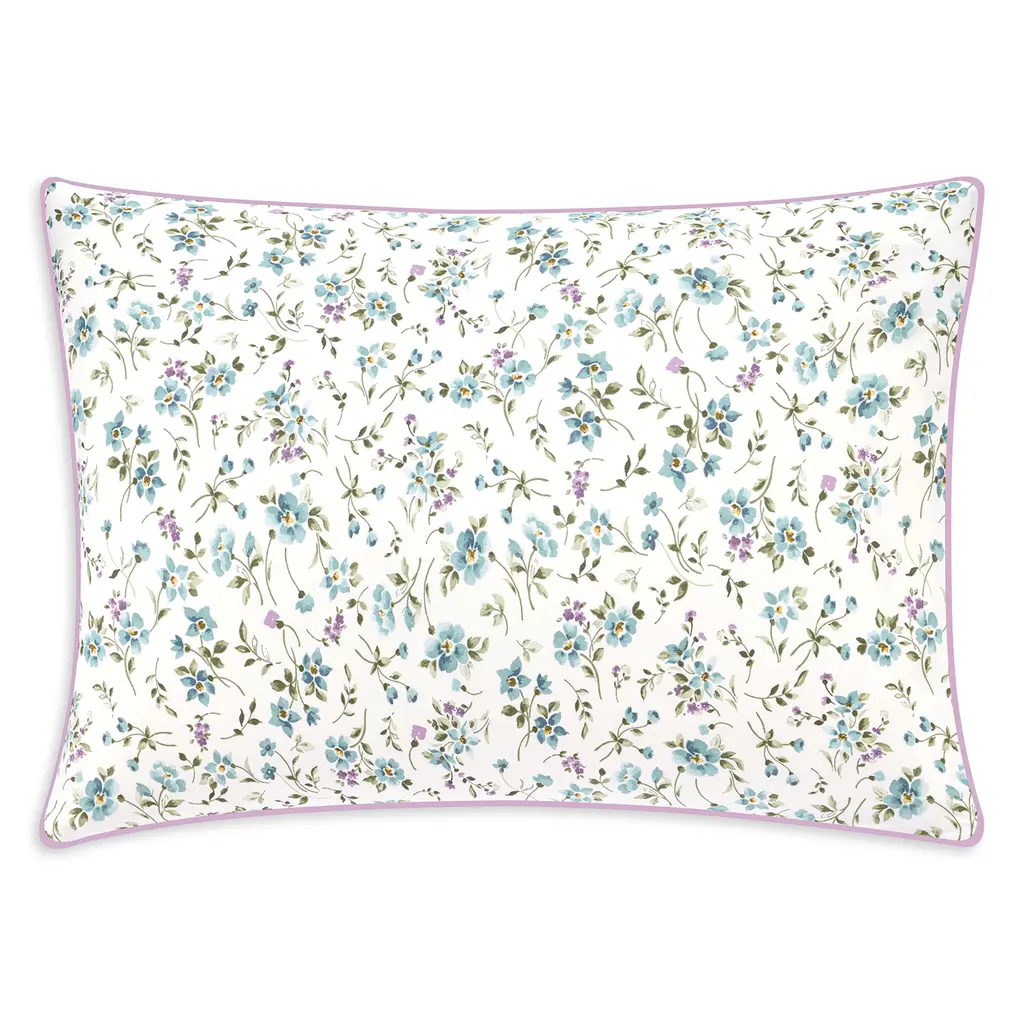 Anne de Solene's Enchantement Bedding Collection offers a beautiful, modern watercolor design of pansy flowers coordinated with a contemporary design of small lines transports us to a world between dream and reality. The flowers in evanescent hues infuse a dreamlike softness. The modern small lines print coordinates with the flowers print and provides a very modern aesthetic. Pansy flowers, with their delicate looks, belie their tough as steel nature; they bloom in winter, unphased by the cold. The soft color palette, on a white ground, imbues a sense of peace and relaxation.