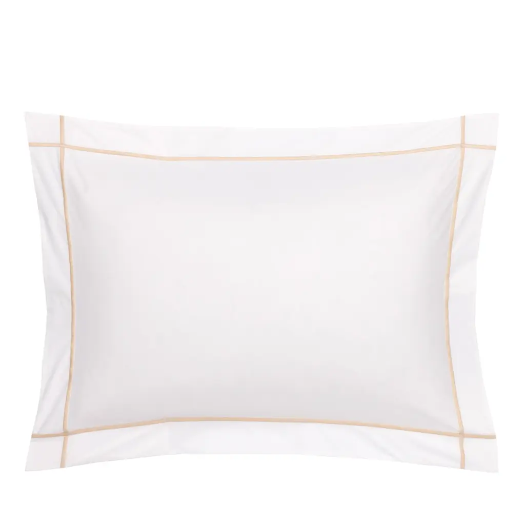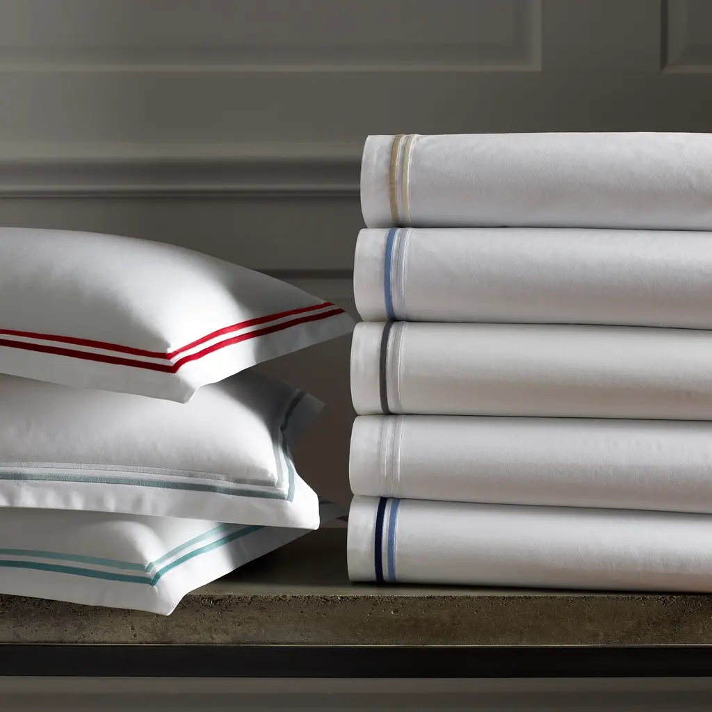 Crafted in crisp 350-thread count cotton, this luxurious sham from Matouk features an elegant double satin stitch border in tonal hues.