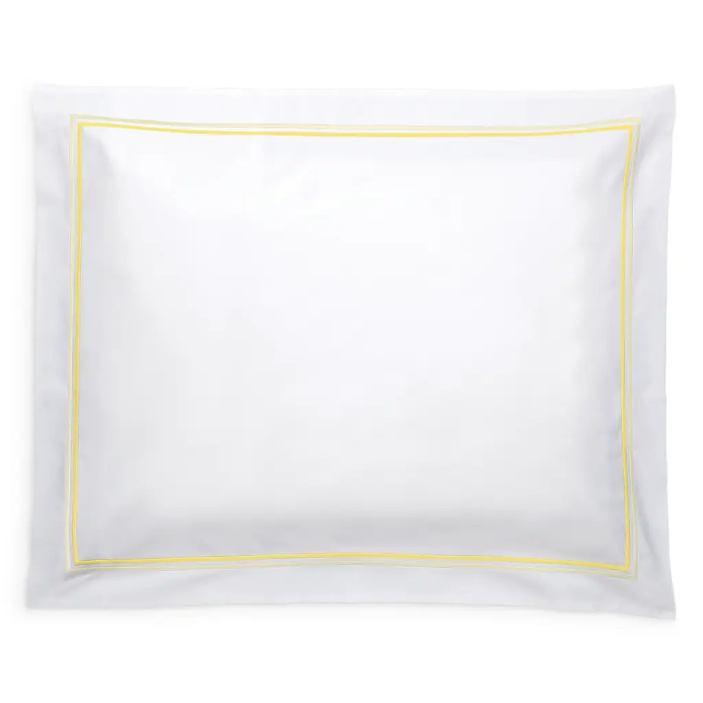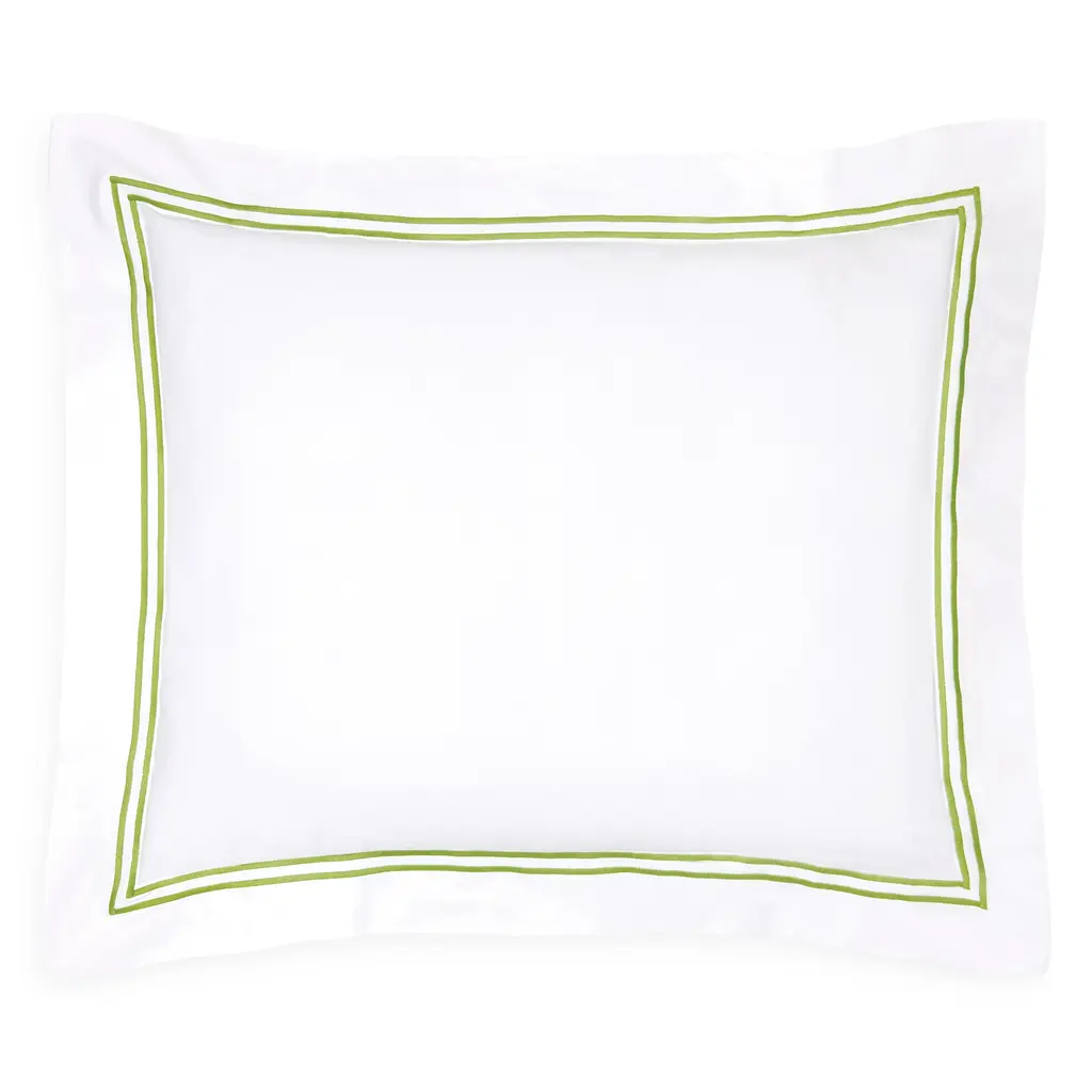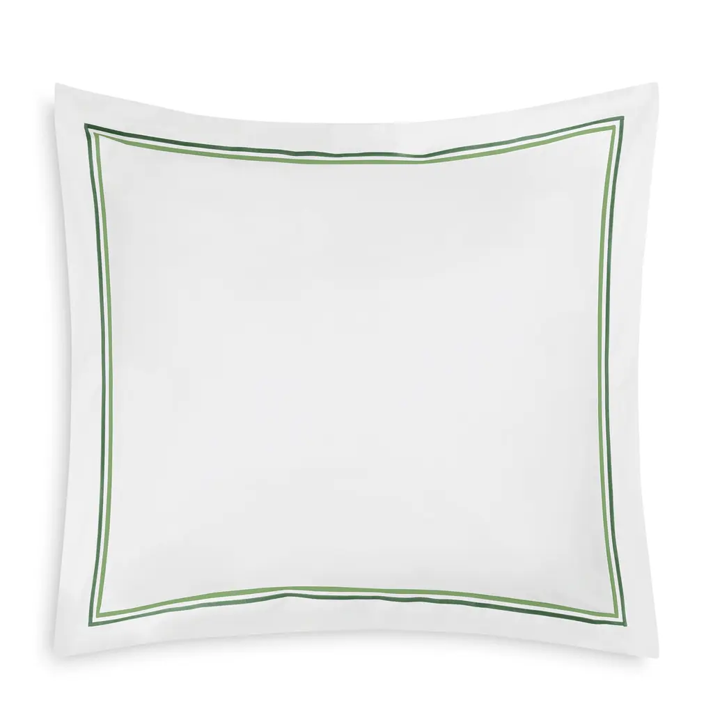 Crafted in crisp 350-thread count cotton, this luxurious sham from Matouk features an elegant double satin stitch border in tonal hues.