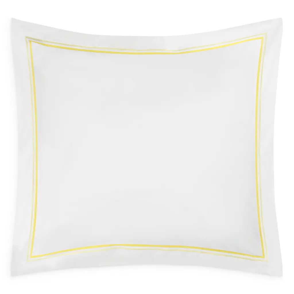 Crafted in crisp 350-thread count cotton, this luxurious sham from Matouk features an elegant double satin stitch border in tonal hues.