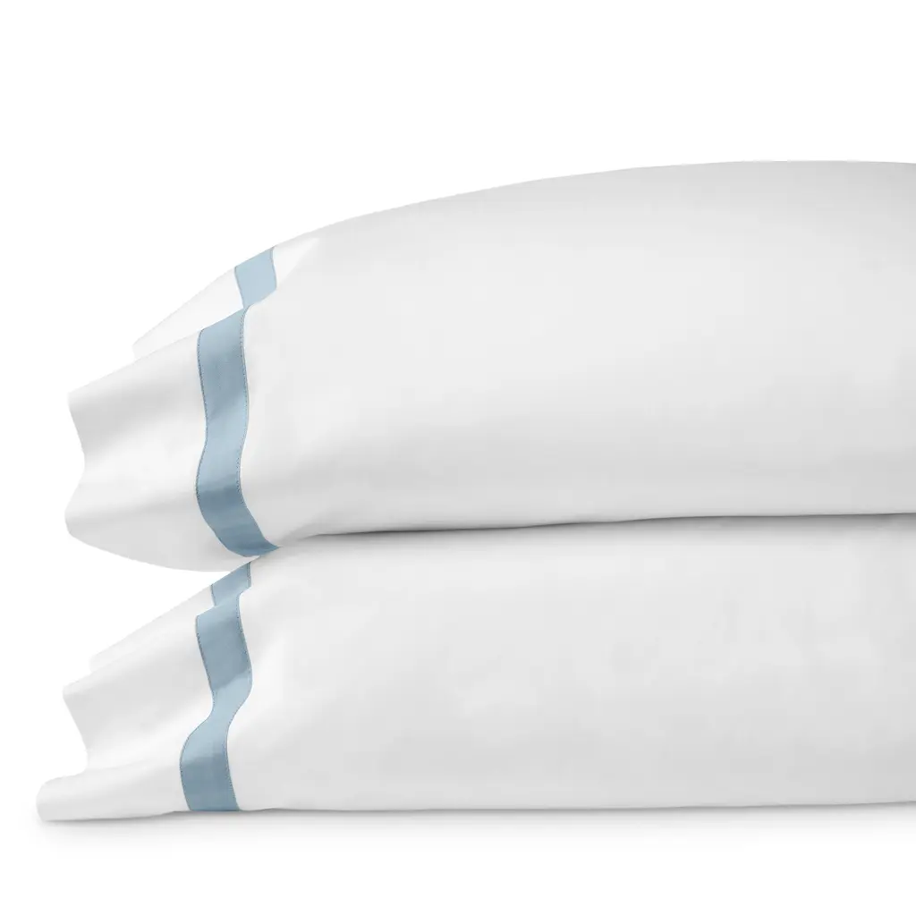 The understated sophistication of Estate's crisp white, Italian-woven long-staple cotton base is an immaculate backdrop for lustrous sateen appliqué detail, beautifully bordering this collection to create a sense of tailored elegance.