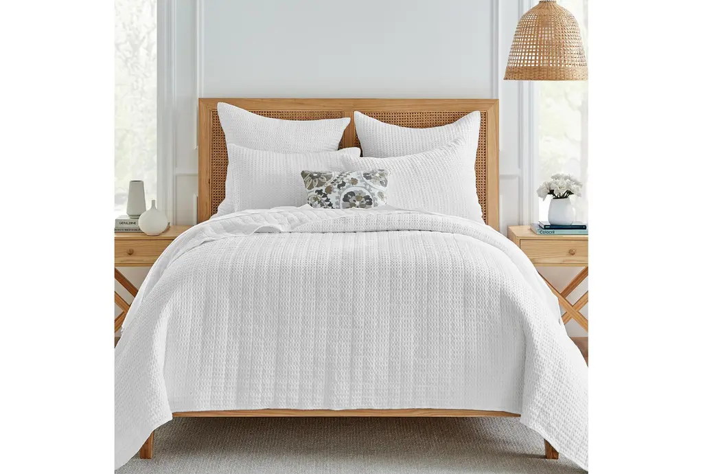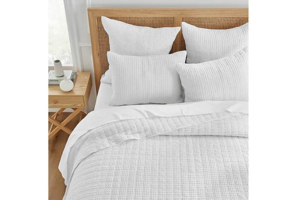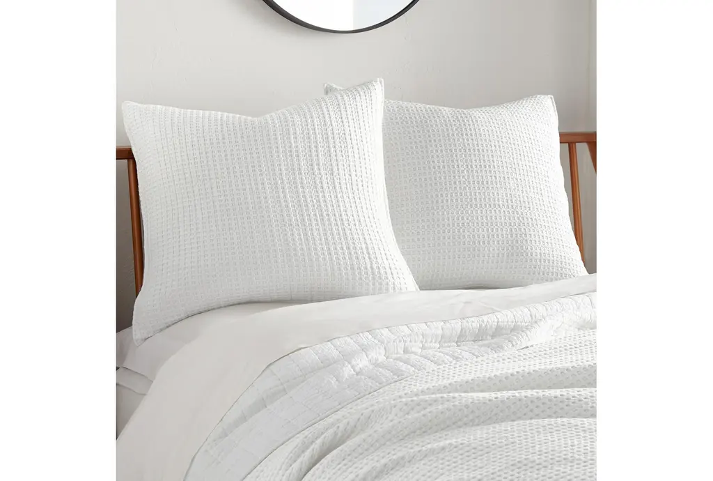 Euro Sham Bright White Natural Cotton Waffle Weave 26x26 Grid 2 Piece Sham Set