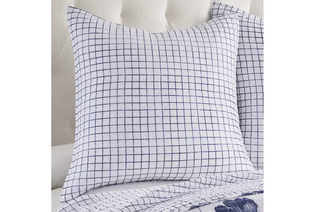 Enhance your bedroom decor with this Euro Sham Set in a navy square pattern. These shams, measuring 26x26, bring a touch of contemporary farmhouse style to your space. Made of 100% cotton, they offer both comfort and durability.