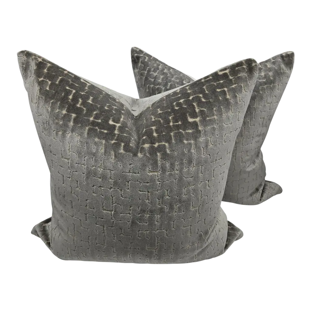 Enhance your bedding ensemble with the Euro Sham - Set of 2 Cotton Cross Stitch Charcoal. These square shams, featuring a geometric pattern, blend seamlessly into any bedroom decor. Made from 100% cotton, they offer both comfort and durability.