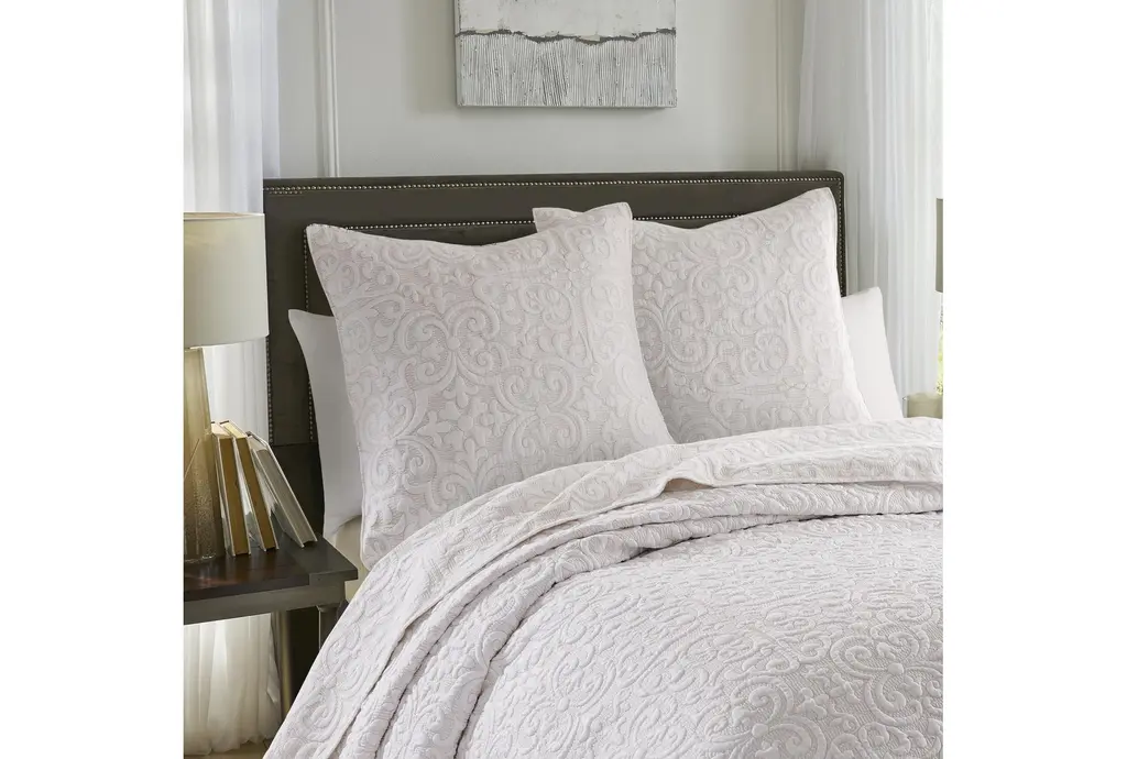 Euro Sham-Set Of 2 Medallion Taupe Stitch White Natural Cotton | Square | Machine Washable