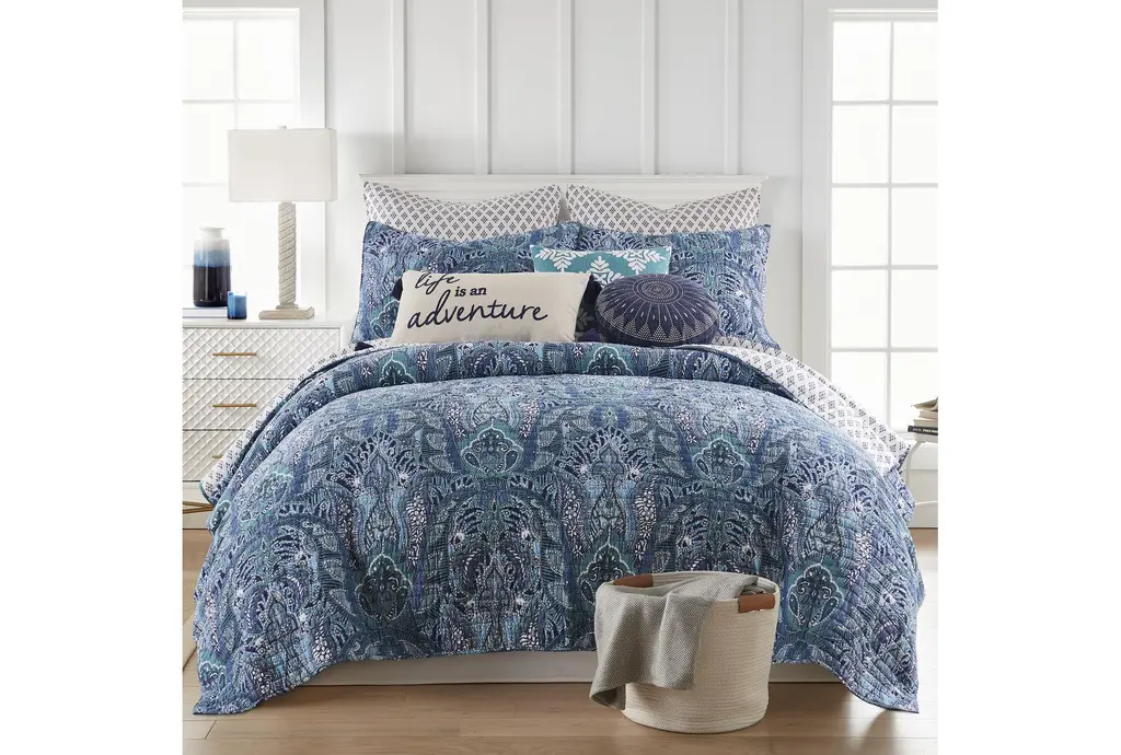 Euro Sham-Set Of 2 Small Diamond Blue Cotton On White | Square