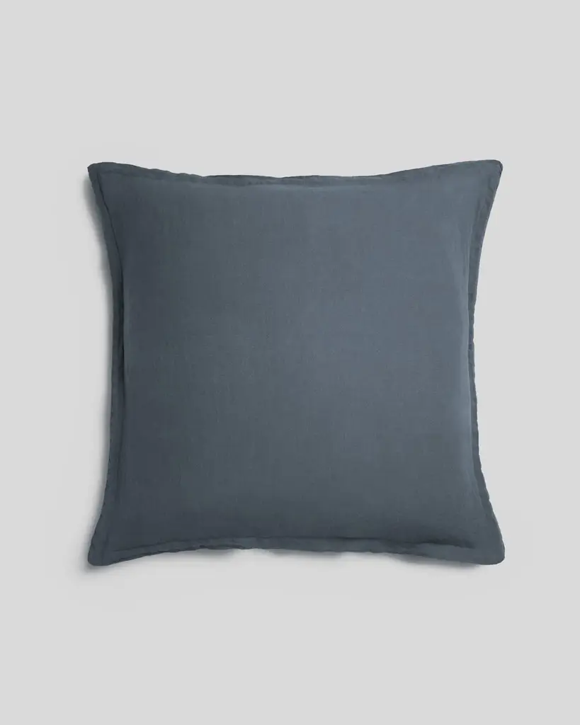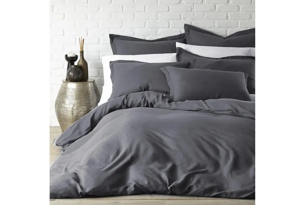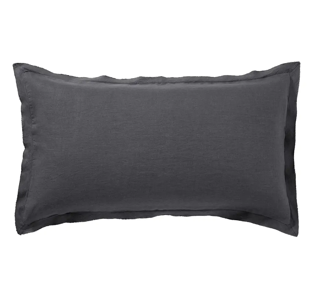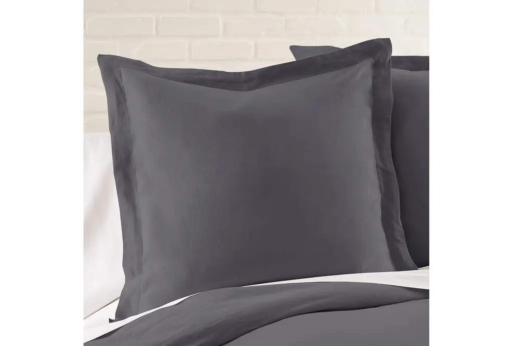 Euro Sham Washed Linen Grey Black With Flange Charcoal | Square | Machine Washable