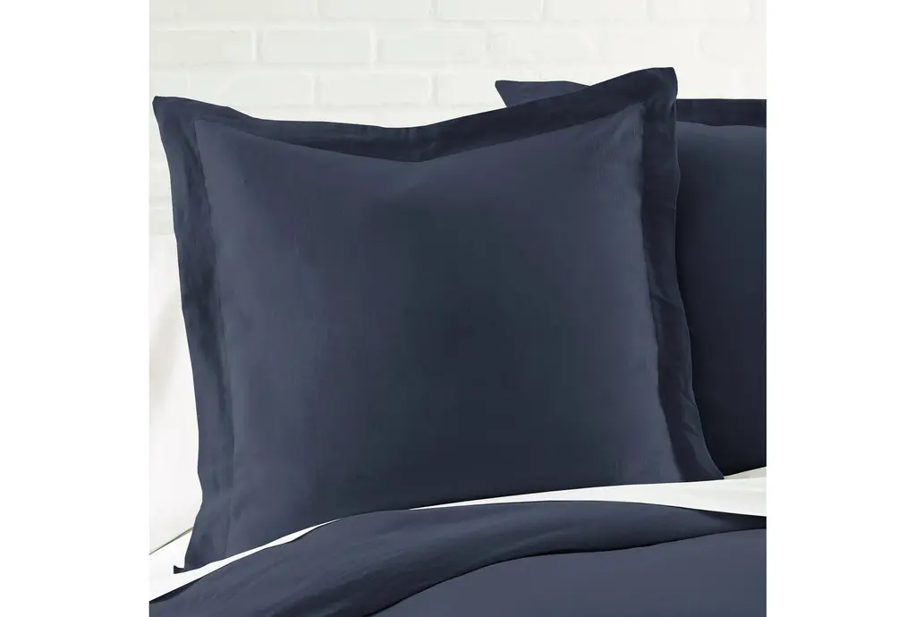 Enhance your bedding ensemble with the Euro Sham Washed Linen Navy Blue. This square-shaped sham is crafted from breathable linen, ensuring comfort and durability. Its deep navy color adds a touch of sophistication to any bedroom.