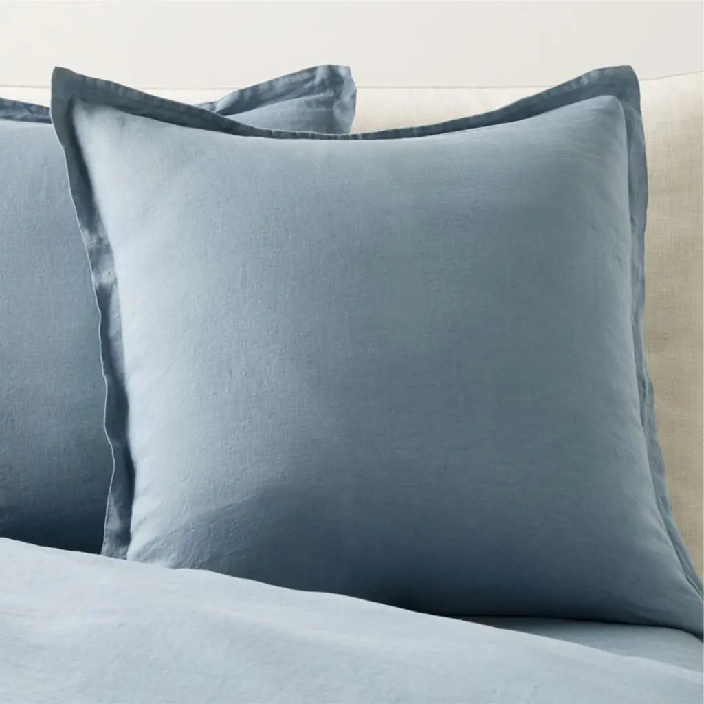 Made in Portugal from durable European flax fibers, EUROPEAN FLAX linen pillow shams in slate blue become softer with each wash. Remarkably breathable and moisture-wicking, linen is a dream for summer nights and those who sleep hot. Pair with matching duvet to complete the look. CB2 exclusive.