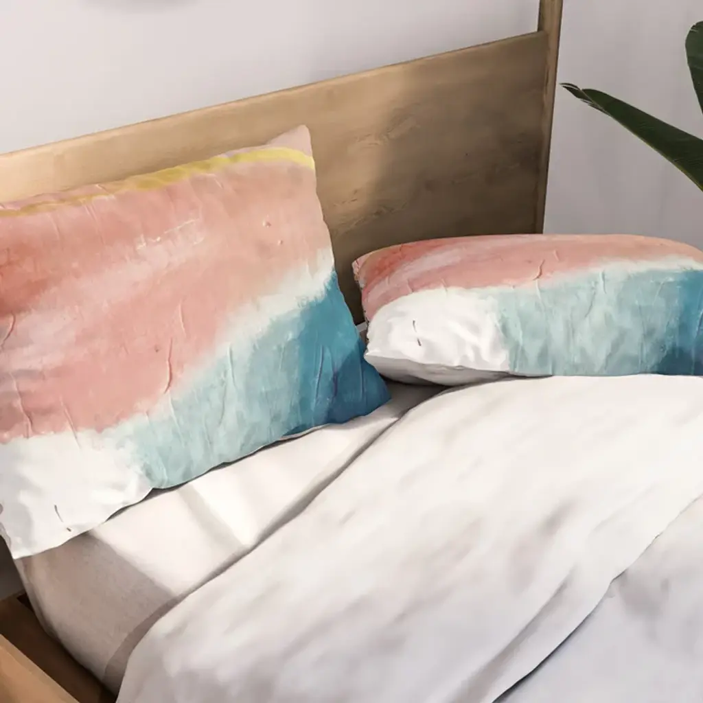Exhale: A Pretty, Minimal, Acrylic Piece In Pinks, Blues, And Gold Pillow Sham