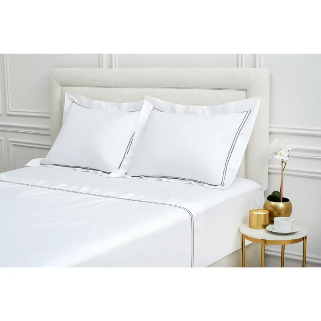 With double marrow Champagne embroidery on 400-thread-count long-staple cotton percale, this piece from our Legacy collection exemplifies the tailored and refined style of a penthouse suite. The Legacy collection is crisp, breathable, and specially washed for a soft, smooth feel.