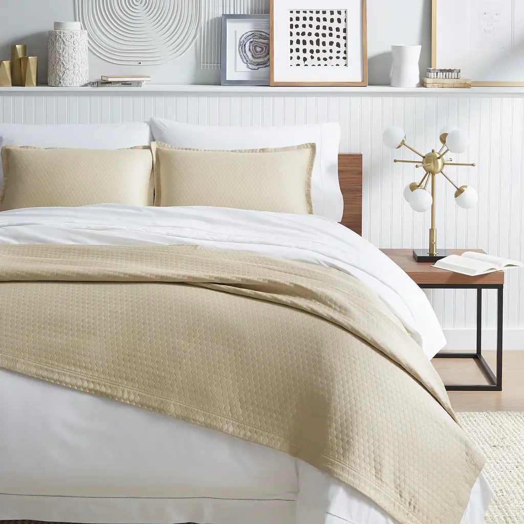 Crafted in sumptuous cotton, the SFERRA Nesse bedding collection pairs smooth Egyptian cotton sateen sheets with a crisp white duvet cover and shams adorned with a small damask jacquard motif, a luxurious design for any bedroom.