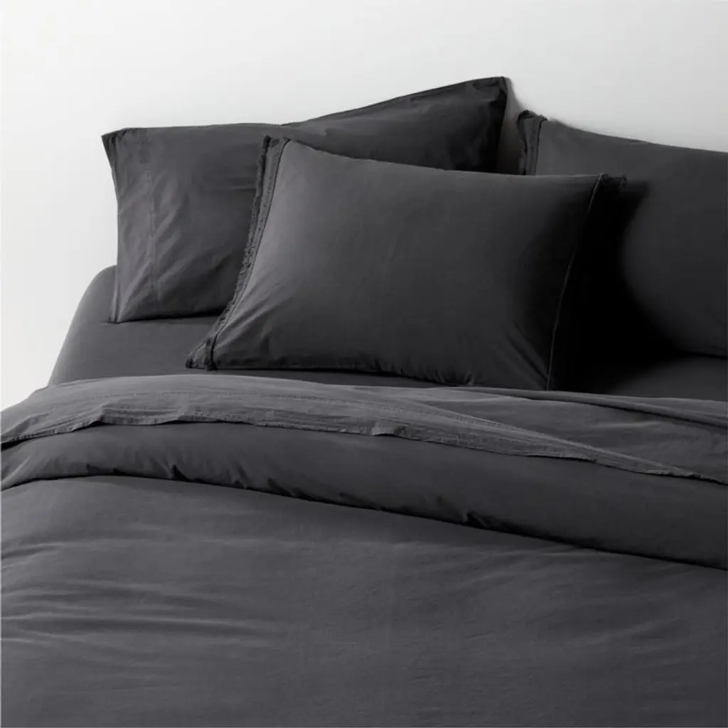 Favorite Washed Organic Cotton Midnight Navy Blue Eyelash King Bed Pillow Sham