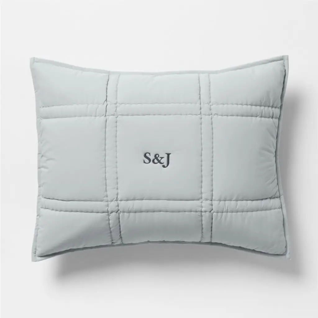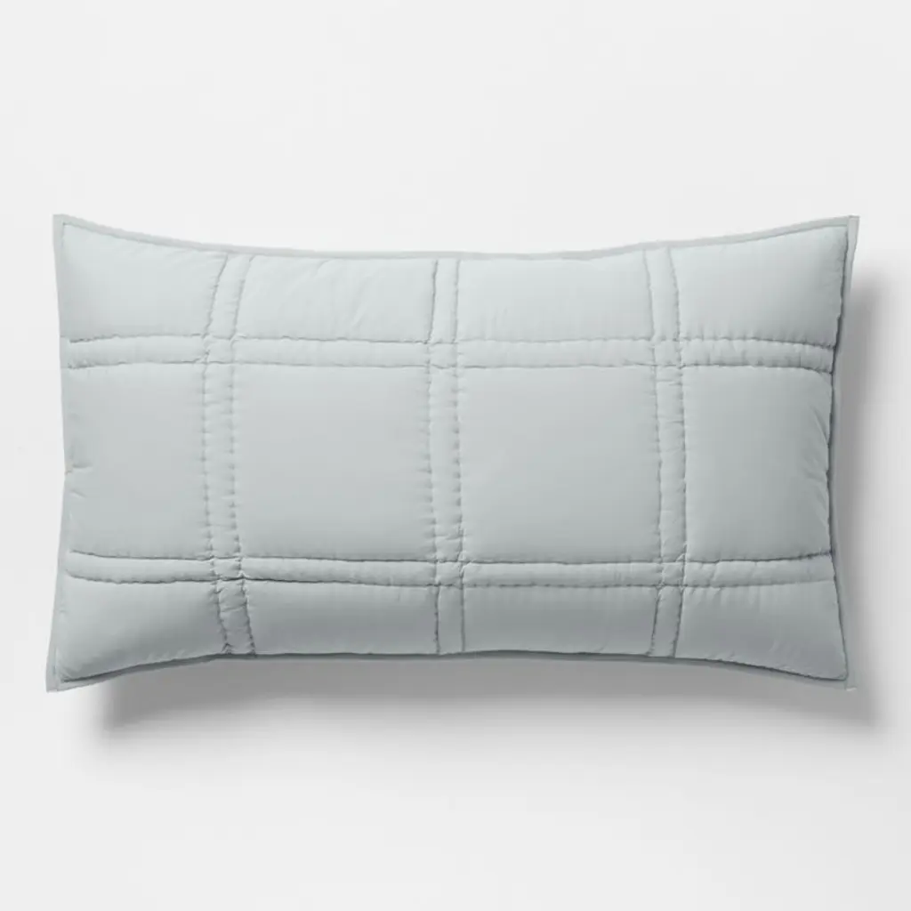 To round out our bestselling Favorite washed organic cotton bedding collection, we created the pillow sham of our dreamslight and airy, irresistibly puffy, and crisp-yet-soft thanks to its washed finish. Skilled artisans quilt the sham by hand, layering extra-plush fill between misty blue organic cotton percale. The result is a satisfying double-lined grid that balances a clean, linear look with luxe coziness. Add the matching comforter and other bed linens from our Favorite collection for a dreamy night's sleep.Bed pillows also available.