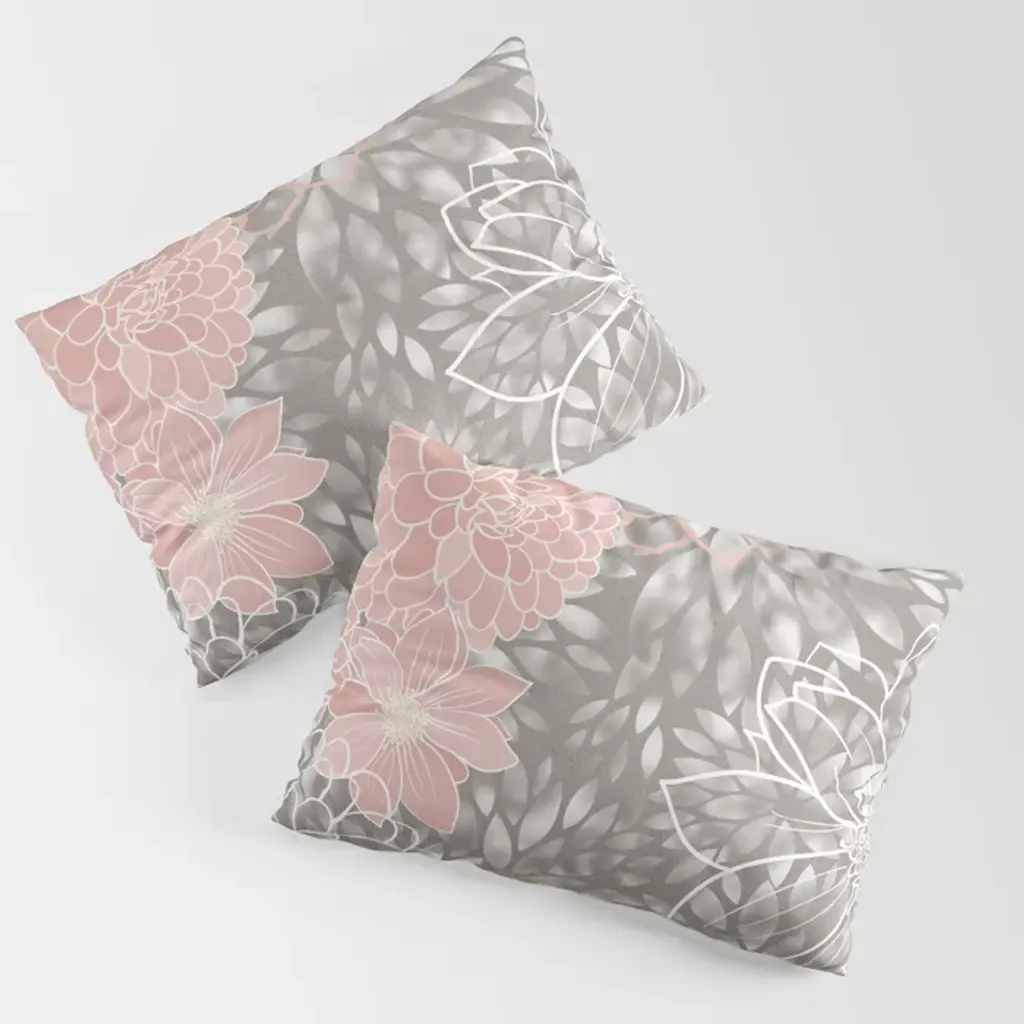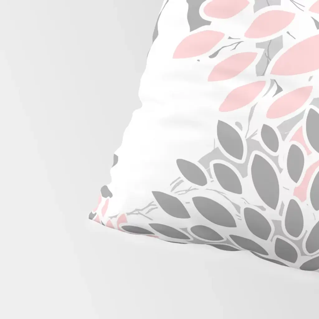 Festive, Floral Prints, Leaves And Blooms, Pink, Gray And White Pillow Sham