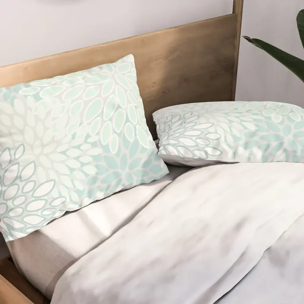 Floral Blooms, Soft Teal And Mint Pillow Sham