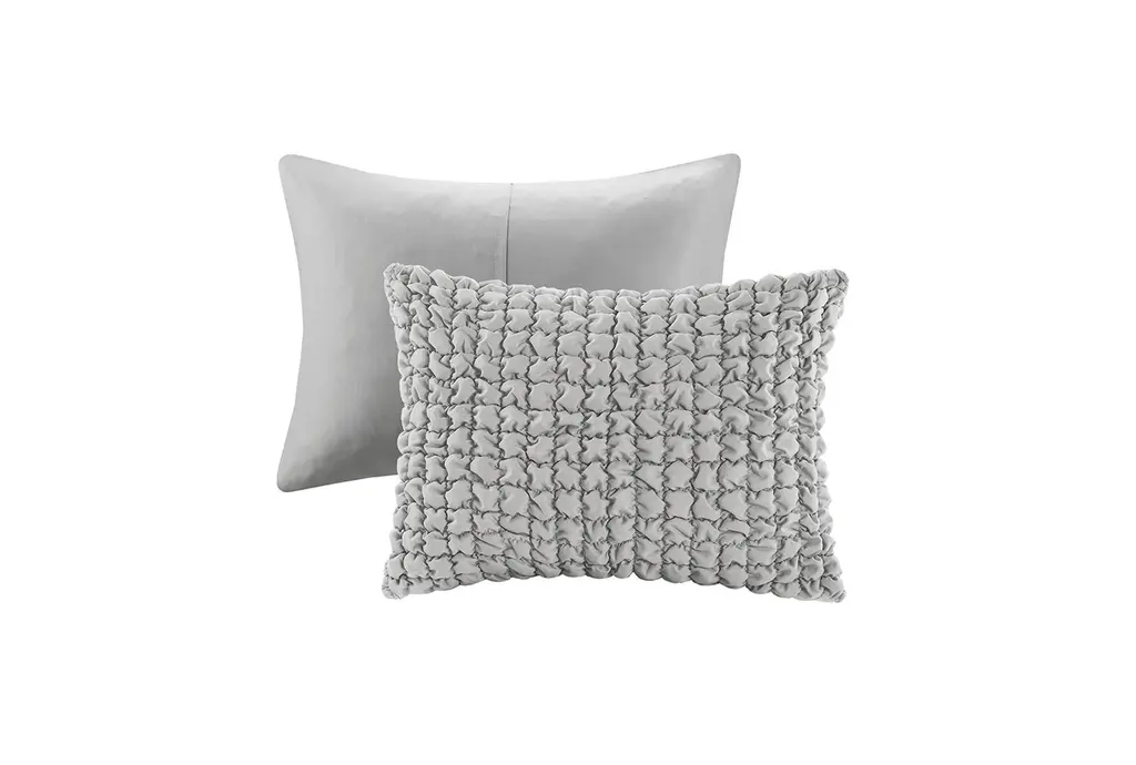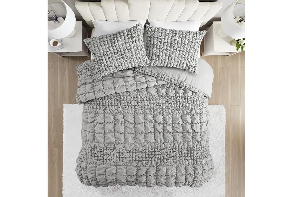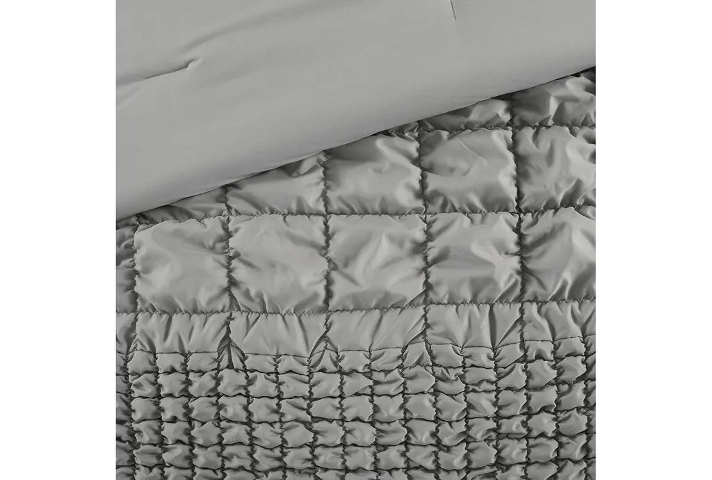 Full/queen Comforter-Grey Polyester Evelyn Stripe Ruched 3 Piece Set With 1 Comforter & 2 Standard Shams | Machine Washable