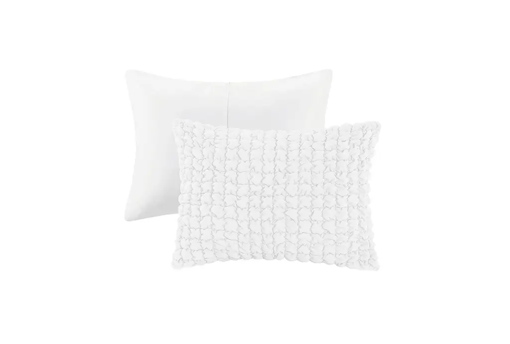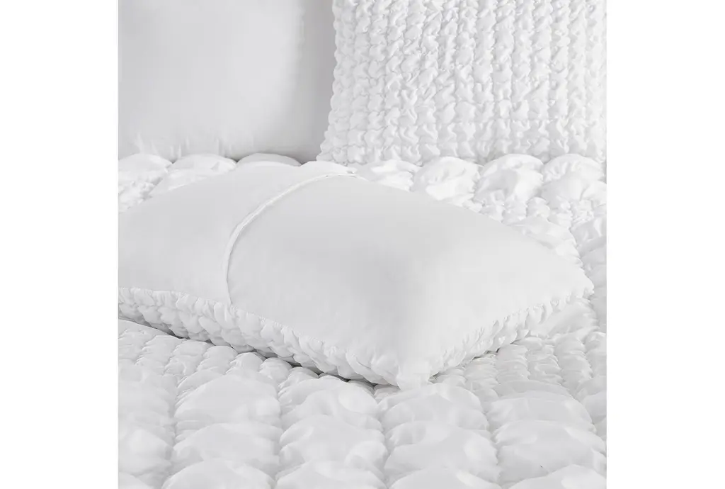 Full/queen Comforter- White Polyester Evelyn Stripe Ruched 3 Piece Set With 1 Comforter & 2 King Standard Shams | Machine Washable