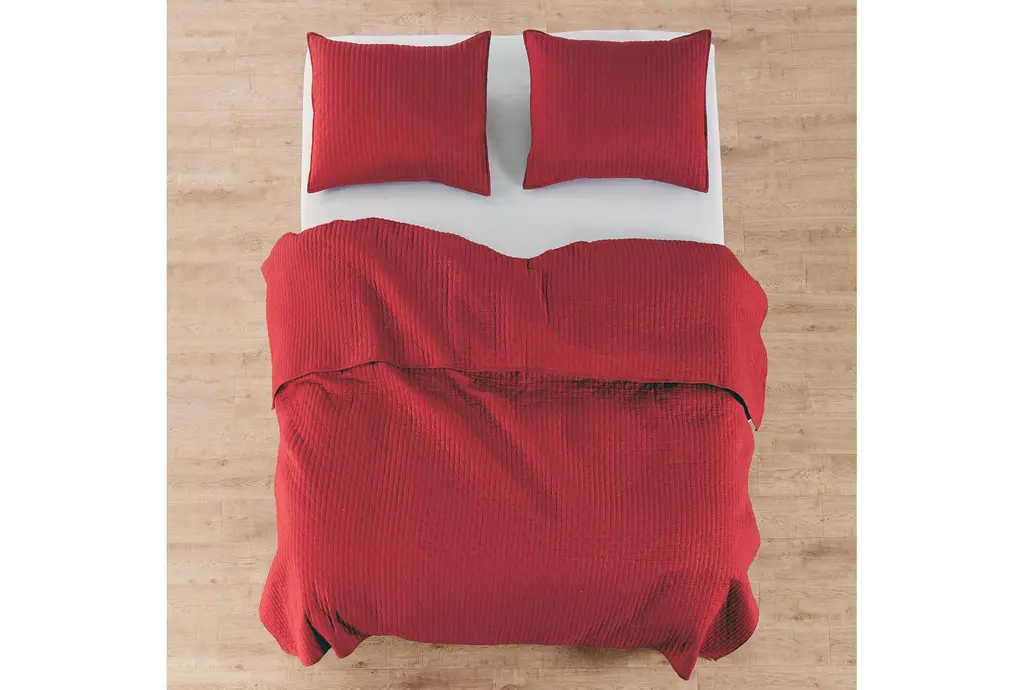 Fullqueen Cotton Quilt-Red Cross Stitch 3 Piece Set With 1 Quilt + 2 Shams | Geometric | Machine Washable
