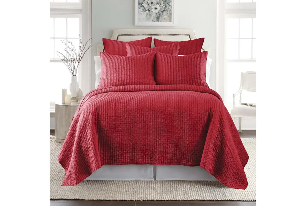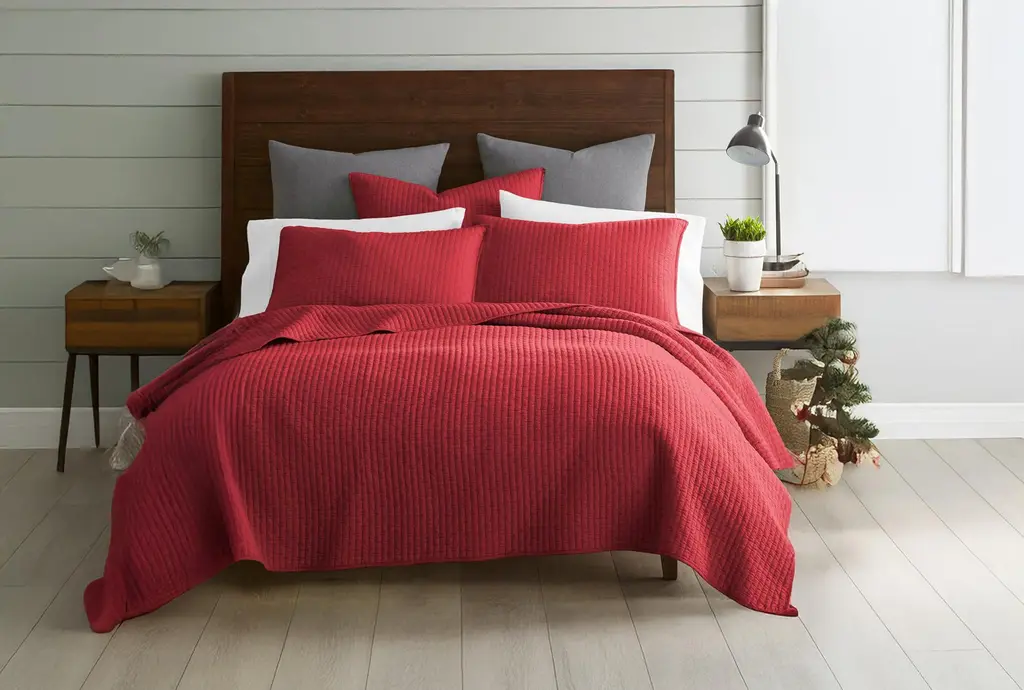 Enhance your bedroom with the Full/Queen Quilt-Red Cross Stitch, 3 Piece Set in Chile Red. This set includes one quilt and two shams, all crafted from 100% cotton for a soft and comfortable feel. The classic cross-stitch design adds a touch of timeless elegance to your space.