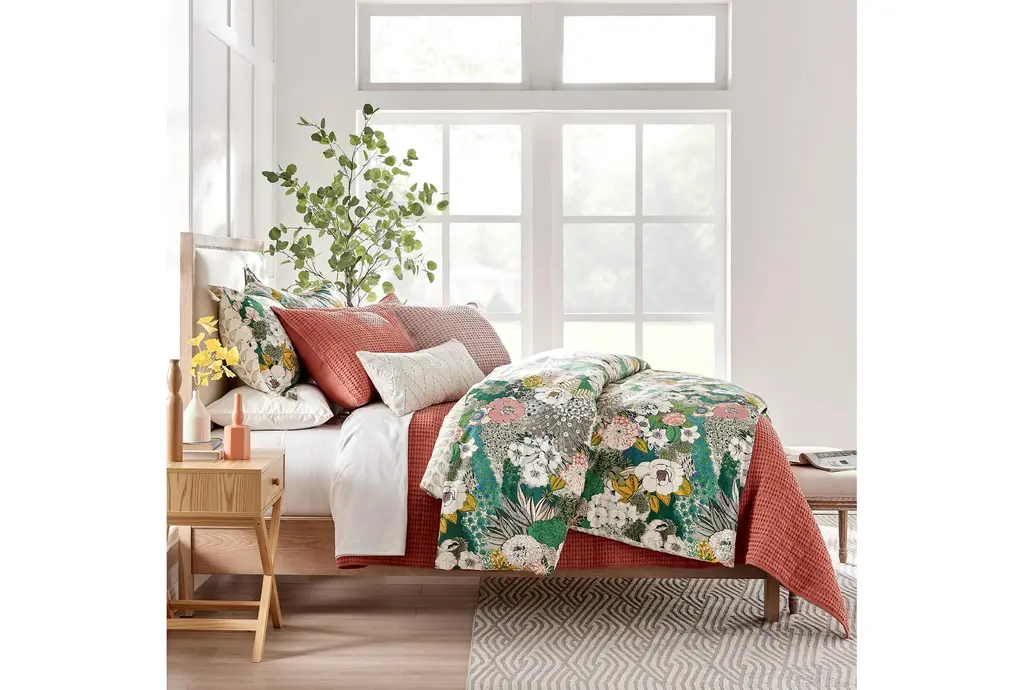 Enhance your bedroom with the Full/Queen Quilt-Rust Red Cotton Waffle Weave 3 Piece Set. This set includes one quilt and two shams, all crafted from 100% cotton for ultimate comfort. The rust red color brings a warm and inviting touch to any space, perfect for creating a cozy autumn atmosphere.