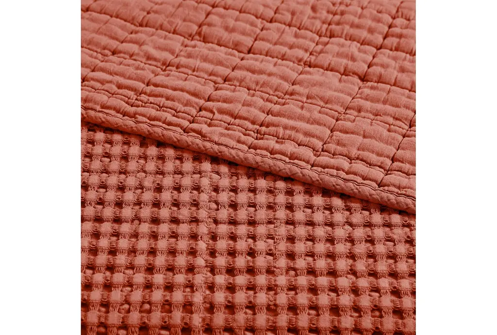 Full/queen Quilt-Rust Red Cotton Waffle Weave 3 Piece Set With 1 Quilt + 2 Shams | Machine Washable