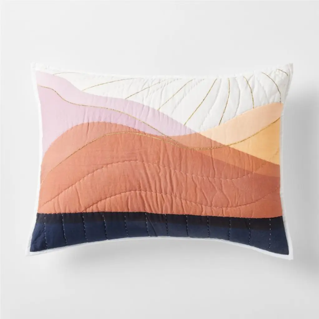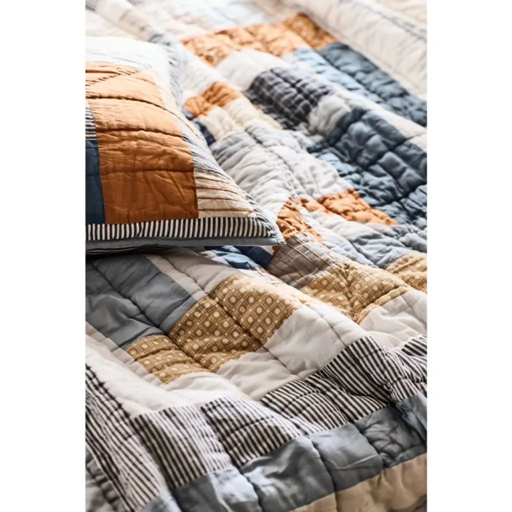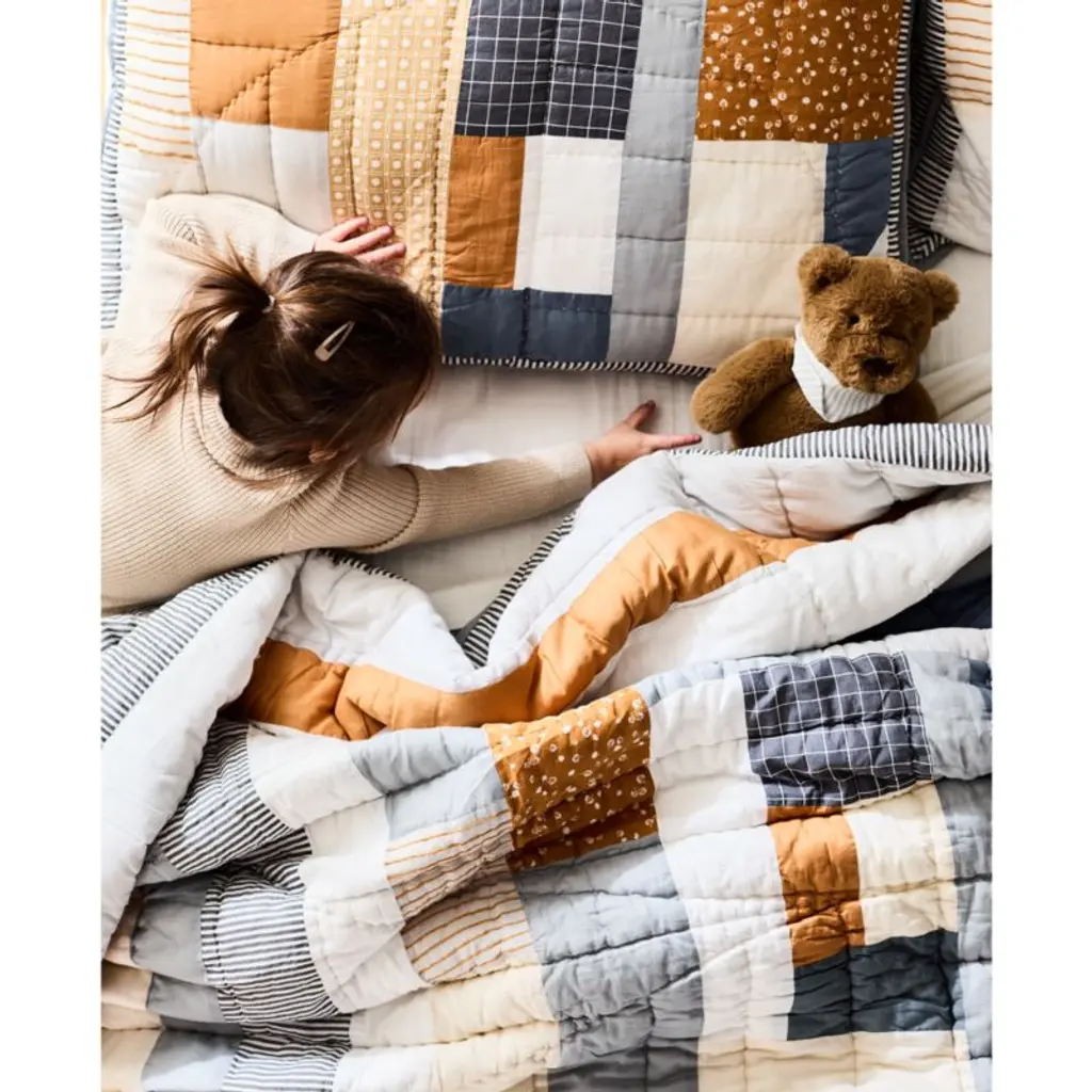 An American craft tradition gets reimagined for today's kids in this modern yet playful quilted pillow sham. Designed by Gee's Bend artist JoeAnn Pettway-West, our hand-pieced Amir Amor Sham pairs a graphic patchwork pattern with an unexpected arch of hand-quilted embroidery. The ultra-soft 100% organic cotton voile feels light and airy, while the slate blue and brulee brown colorway can live on in your child's room for years to come.Our newest collaboration celebrates the heritage and craft of the women quilters of Gee's Bend, Alabama. We partnered with third-generation quilt artist JoeAnn Pettway-West and Nesta nonprofit organization that connects a community of artisans, retailers and philanthropies to bring the beauty of handcraft to the world.