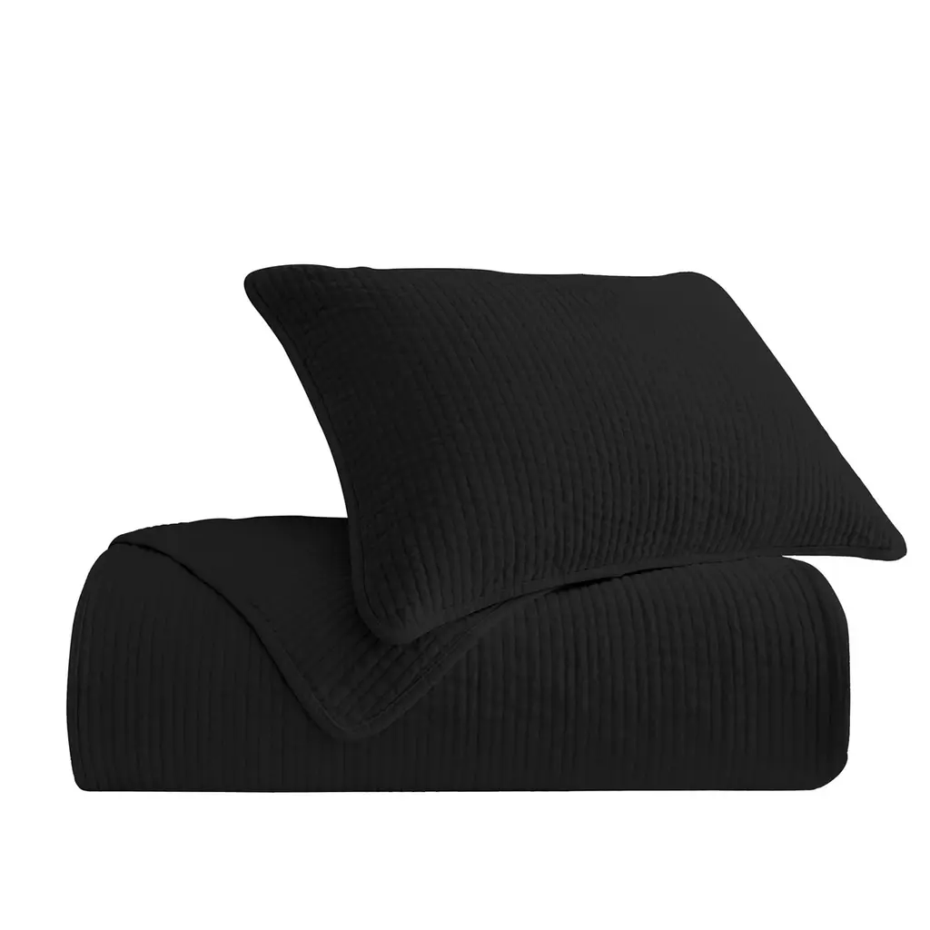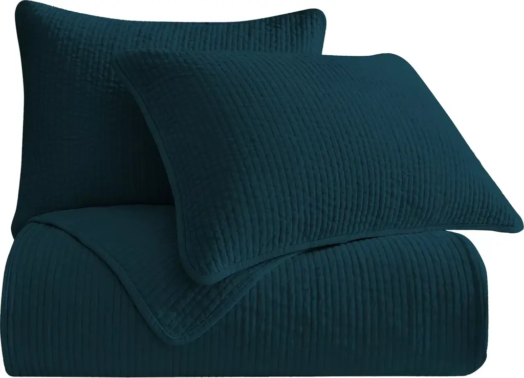 The Geometric Velvet Quilt brings a modern feel to your bedroom. Embroidered stripes comprised of geometric shapes stand out on the velvety cotton fabric. The 100% cotton filling ensures that this piece is ready to add a layer of soft warmth to your space. Comes with 2 included shams.