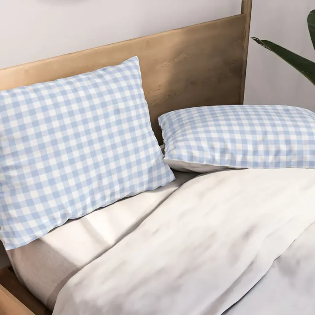 Gingham Plaid Pattern - Natural Sky Blue Pillow Sham