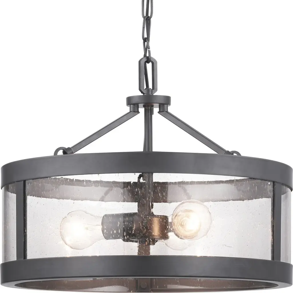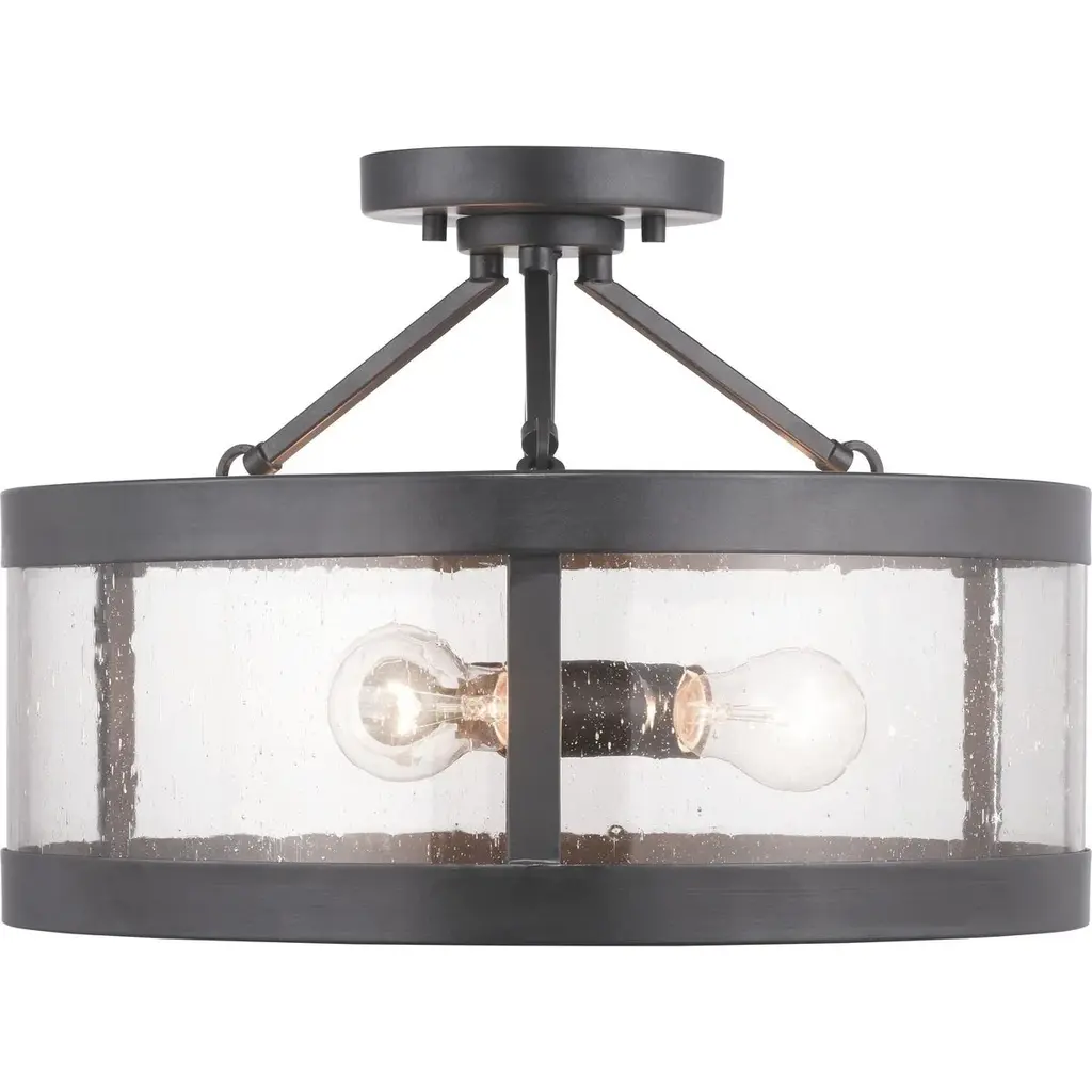 A display of substantial style in a three-light semi flush convertible, Gresham Collection's frame was inspired by the elegance of traditional iron structures. Specific attention to forging details creates a distinctive collection for Transitional and Farmhouse interior spaces. Seeded glass shades and a Graphite finish pair together to complete the look.