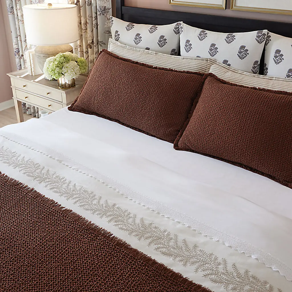 Our Hazel Waffle Bedding may be the perfect layering pieces for a well-made bed. Woven of soft 100% cotton, the organic waffle weave adds cozy texture and color that looks its best casually draped and tousled. Hazael is made in Portugal, known the world over for its superior weaving and masterfully crafted textiles. The Pillow Sham is finished with 1" fringed edges and envelope closure. Hazael Waffle Sham features: