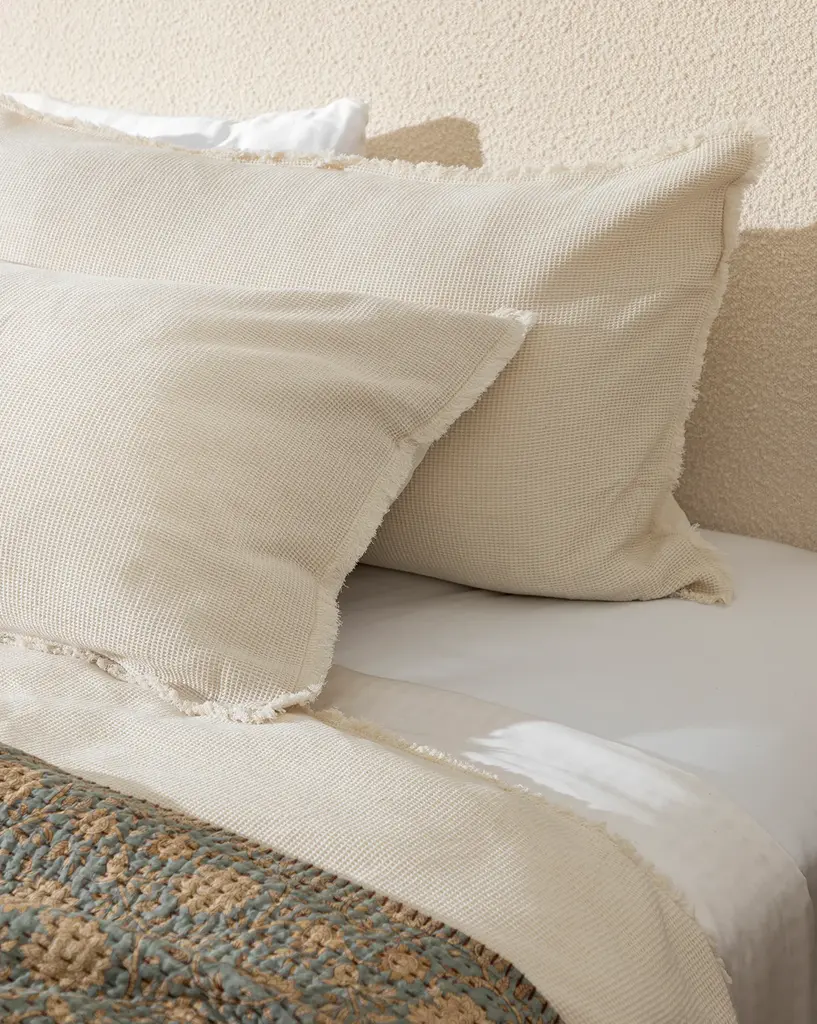 Made from a cotton waffle weave, the Helene Waffle Shams bring subtle texture and a calming neutral tone to your space. The shams allow for seamless styling and layering, elevating your bedroom with their craftsmanship.
