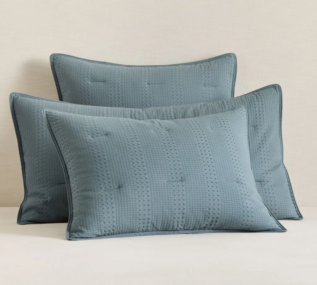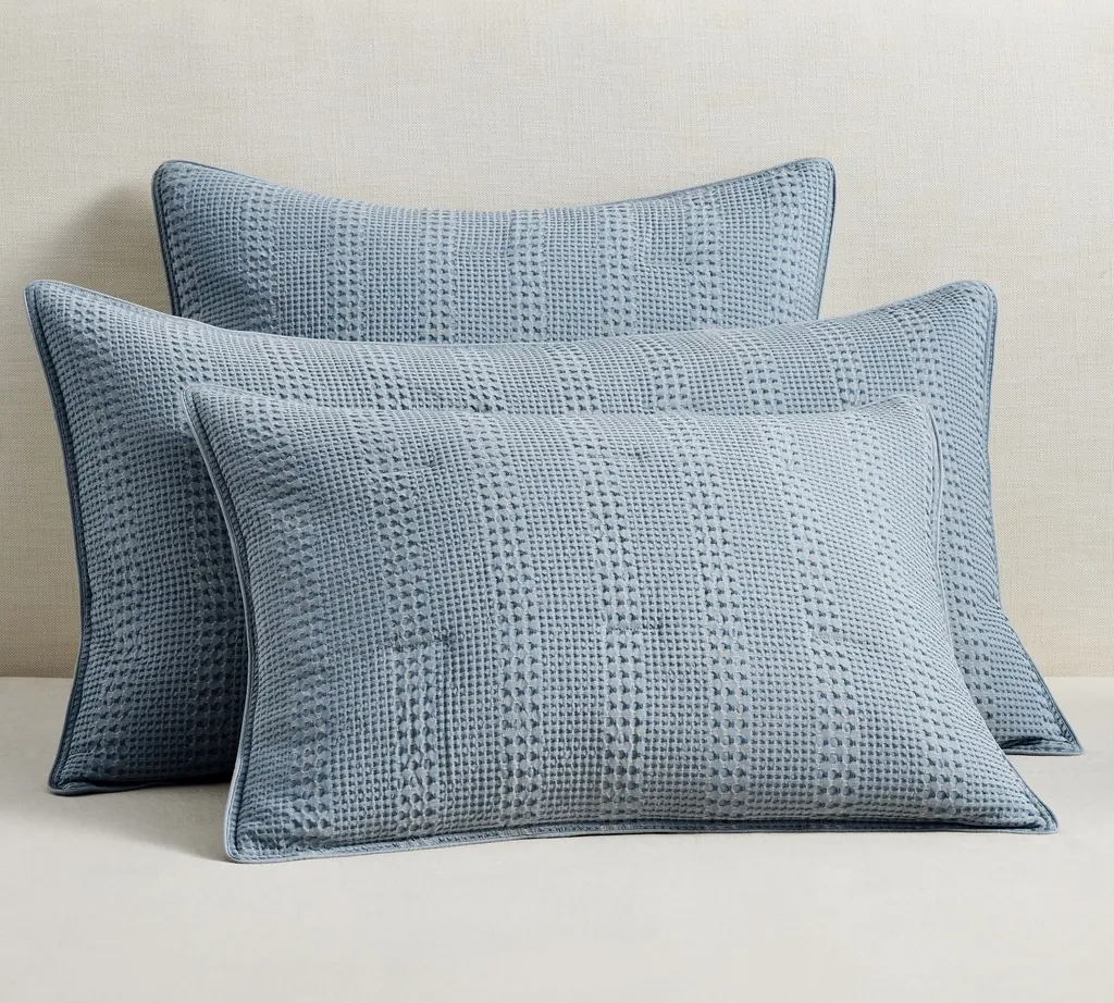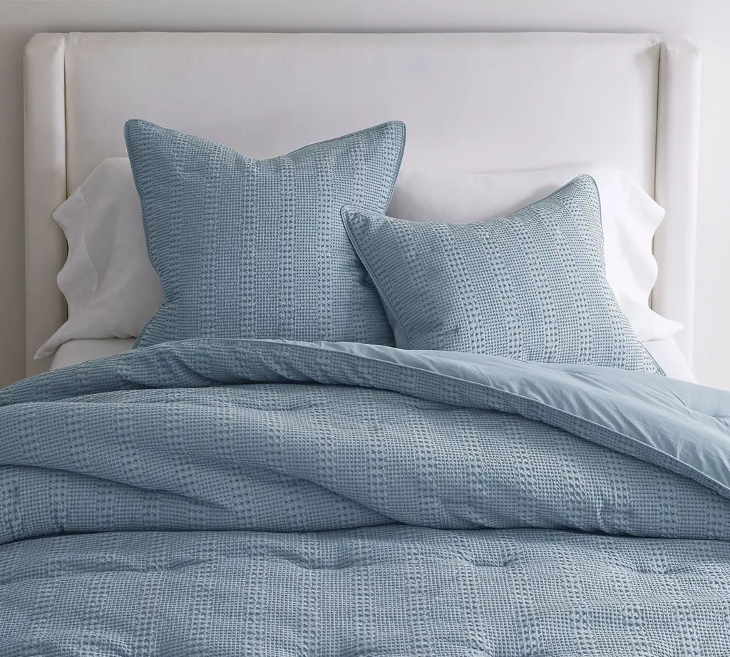 Crafted of pure cotton percale, our waffle weave bedding layers your bed with lofty texture in an unexpected striped design. This bedding is proudly made at a Fair Trade Certified™ factory.