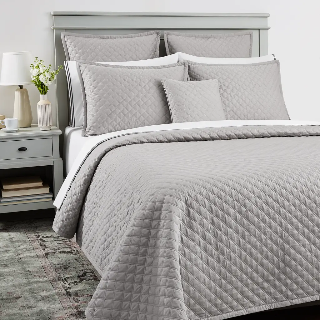 Featuring a double diamond quilted pattern, the coverlet, shams and decorative pillow in this classic collection by Hudson Park pair with a variety of printed bedding.